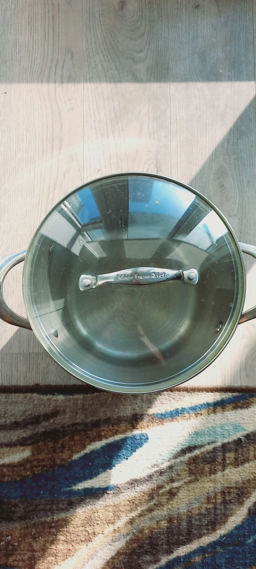 Selling a KitchenAid stock pot that's in good condition! It comes with a glass lid. It's perfect for making soups, stews, or pasta sauces.