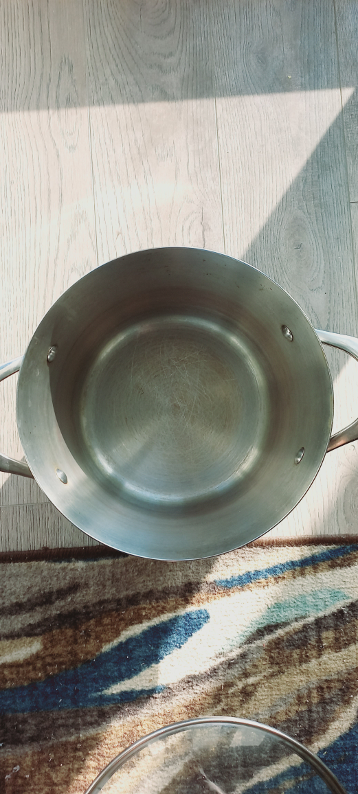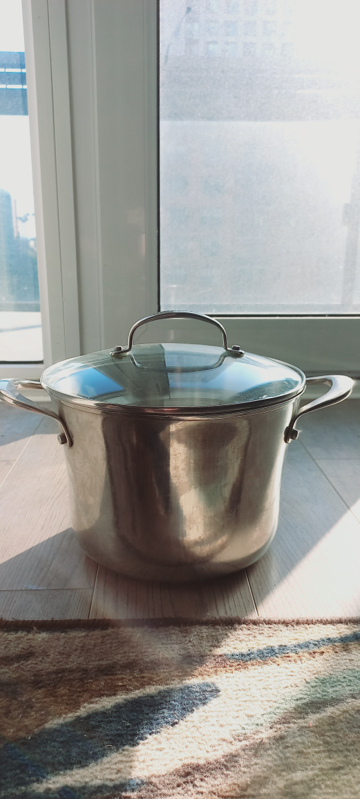 Selling a KitchenAid stock pot that's in good condition! It comes with a glass lid. It's perfect for making soups, stews, or pasta sauces.