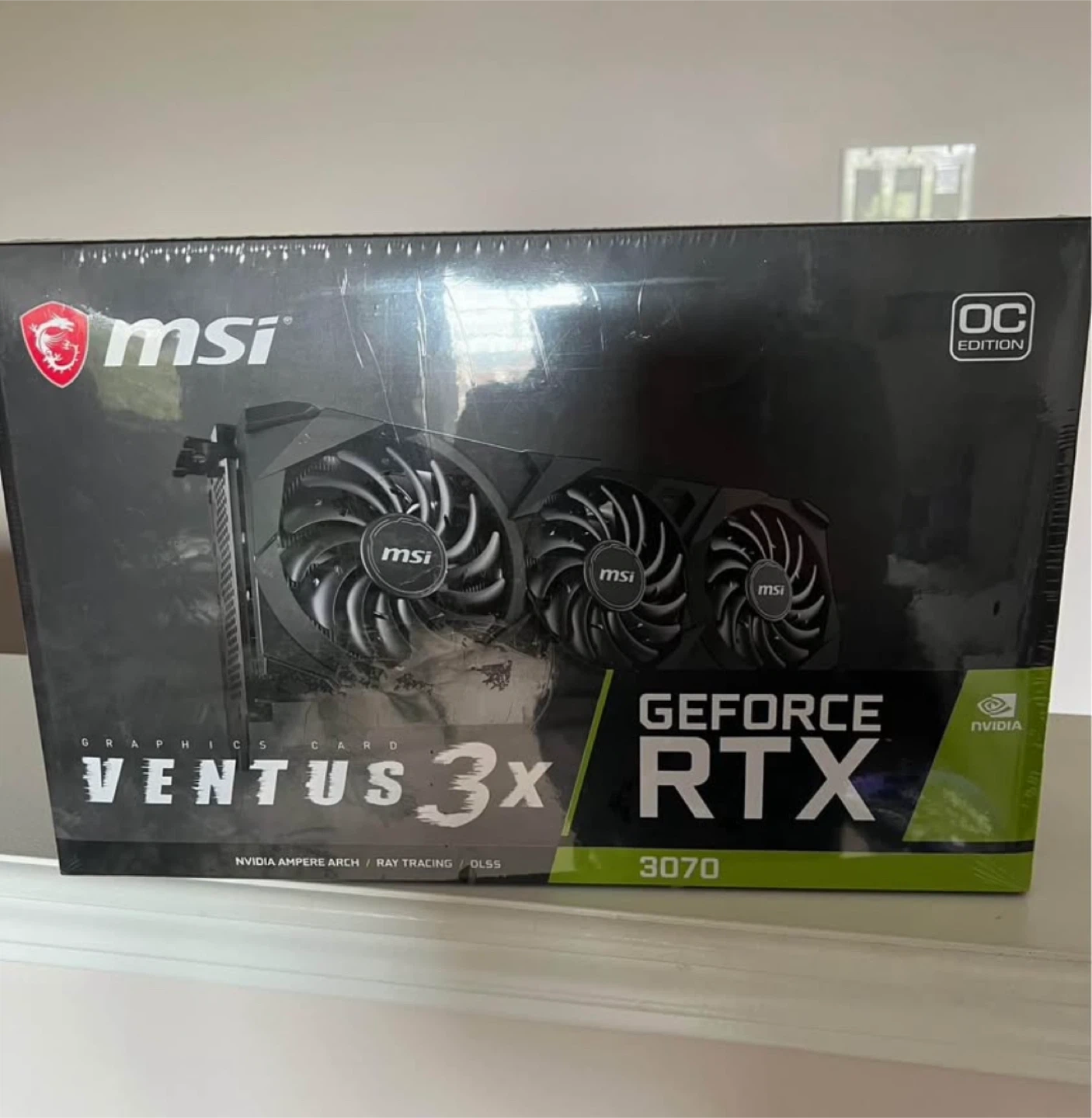MSI GeForce RTX 3070 Ventus 3X OC graphics card. It's an OC Edition with NVIDIA Ampere Arch, Ray Tracing, and DLSS. This card is great for gaming and creative workloads!