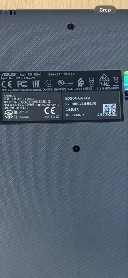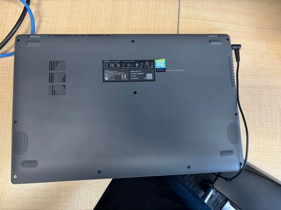 Asus M509Da-AB71-CA Laptop with AMD Ryzen 7 3700U processor, 8GB DDR4 RAM, AMD Radeon RX 10 graphics, and 513GB SSD. Serial number ends in 9210.