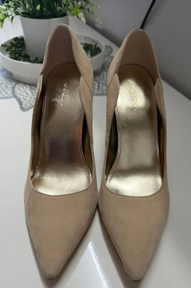 Step out in style with these elegant Guess heels! Featuring a pointed toe and a classic stiletto heel, these shoes are perfect for adding a touch of sophistication to any outfit. These heels are in good condition, having been gently worn.