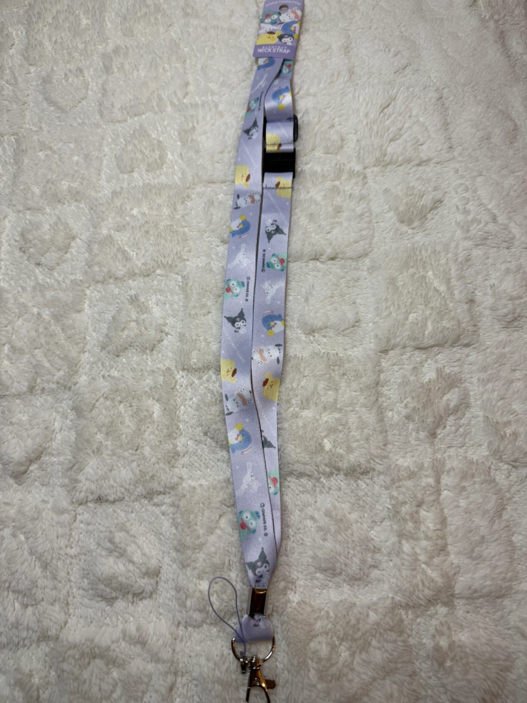 Cute Sanrio characters neck strap. Features a variety of adorable designs. Includes a detachable clip.