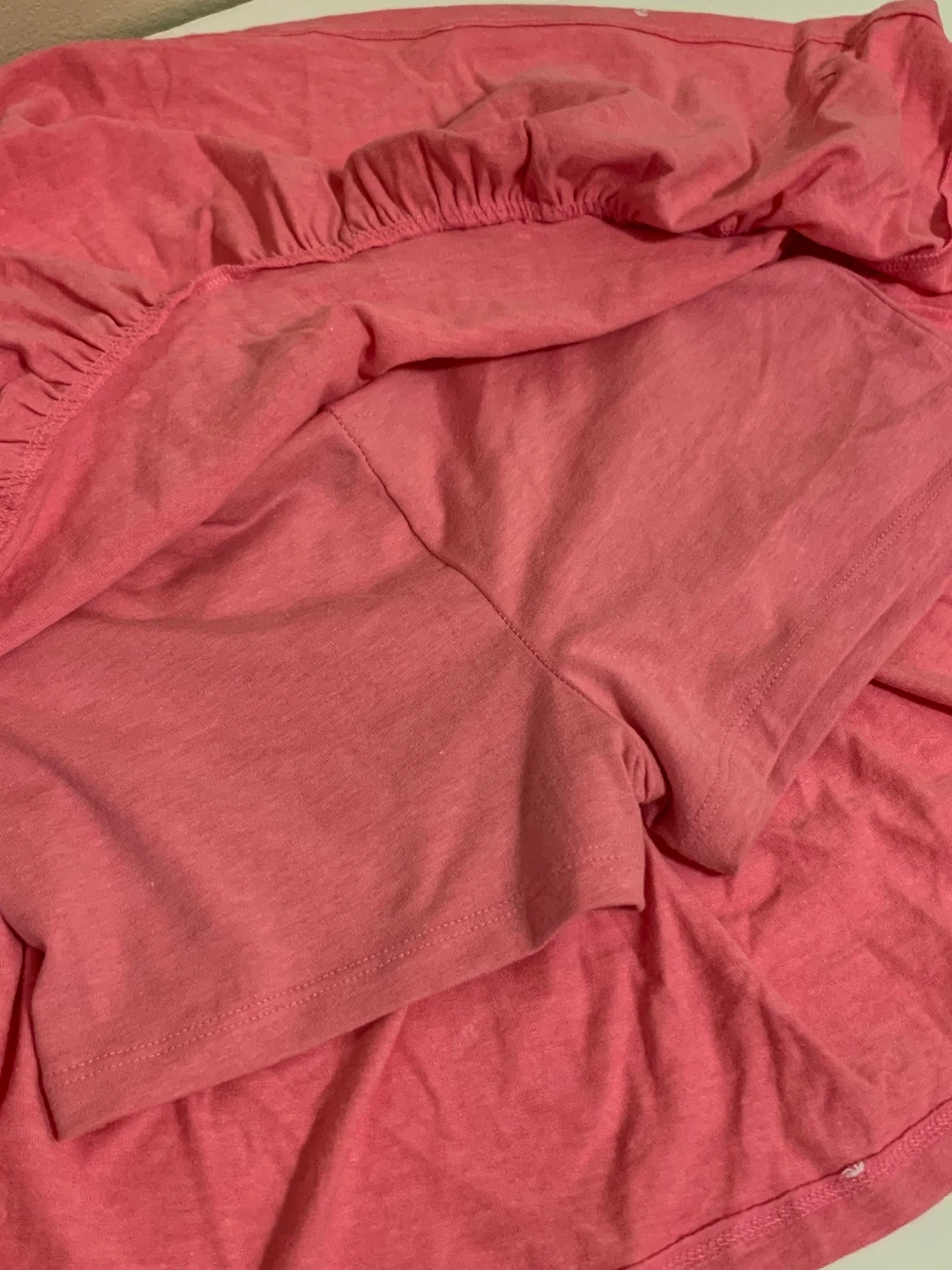 George girl skort in a pink with a white floral pattern. It's a size L/G, which fits a 10-12. The skort has built-in shorts for comfort.
