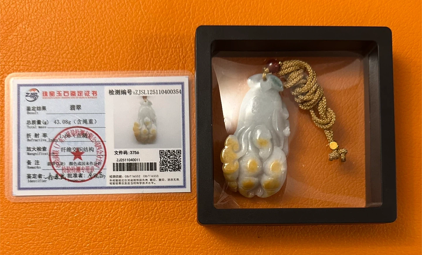 This is a unique high quality rare back to back carved jade pendant with Certificate of Authenticity. It features a lovely translucent light green and white jade with some golden yellow inclusions. The pendant comes with a braided cord for easy wear. It's a beautiful piece with intricate detailing.