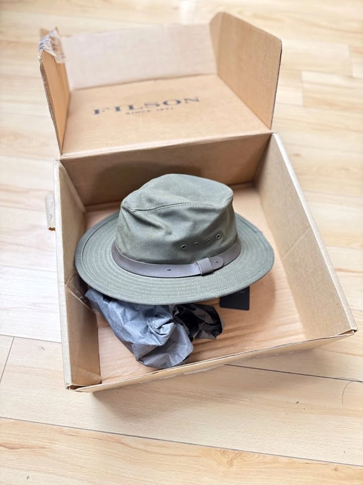 Buy & SellFilson Tin Packer Hat Otter Green MFilson Tin Packer Hat Otter Green M$80Water-resistant oil finish Tin Cloth fabric. Full brimmed hat. Never worn. Brand new. Still in original box. Uni-sex.WHERE TO MEETCheck LocationView MapSELLERKarieMontgomery231 review0 chats·0 favorites·8 viewsSEND CHAT TO SELLERHi Karie! I’m interested in your listing.Hi Karie! I’m interested in your listing.Get the Karrot app to chatSign In to chat