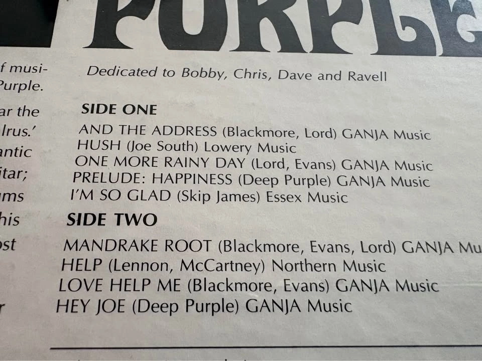 Early Canadian "Shades of DEEP PURPLE" Classic Rock Vinyl