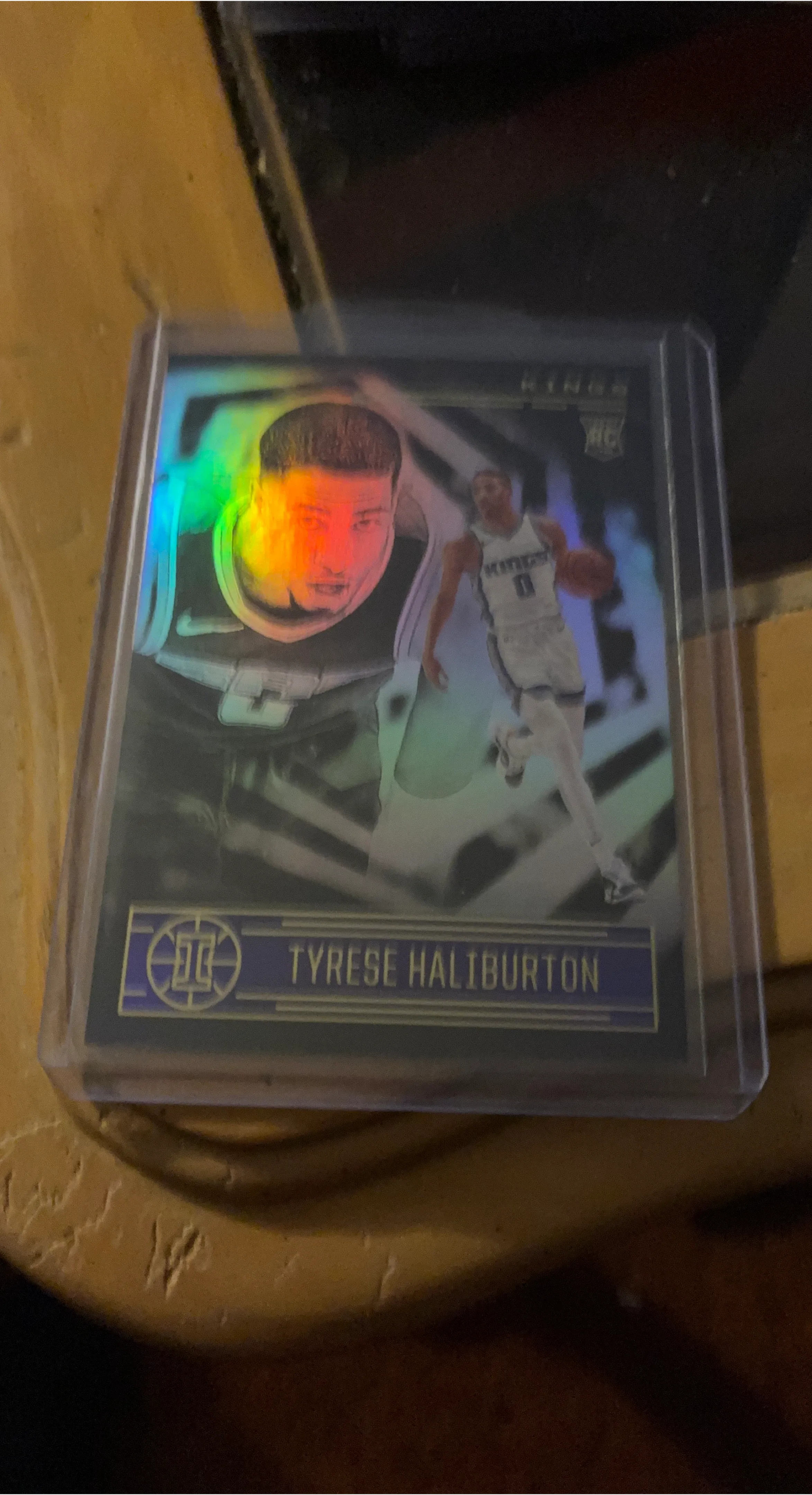 This is a 2020-21 Panini Prizm Tyrese Haliburton Rookie Card (RC). It's a great addition for any basketball card collector. Showcasing his rookie season, it's a fantastic piece of NBA memorabilia!