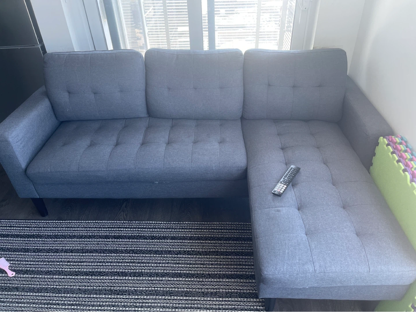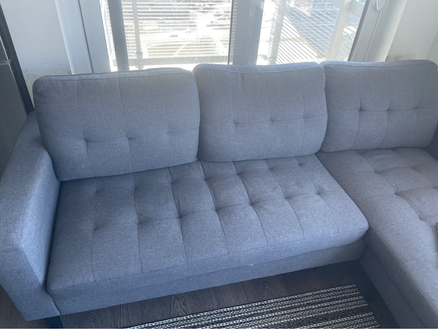 Buy & SellGrey Sectional SofaGrey Sectional Sofa$179Comfortable grey sectional sofa. Upholstered in a soft fabric with tufted cushions. It's perfect for lounging!ConditionGoodWHERE TO MEETVillage Green SquareView MapSELLERNareshAgincourt S100 reviews7 chats·1 favorites·75 viewsSEND CHAT TO SELLERHi Naresh! I’m interested in your listing.Hi Naresh! I’m interested in your listing.Get the Karrot app to chatSign In to chat