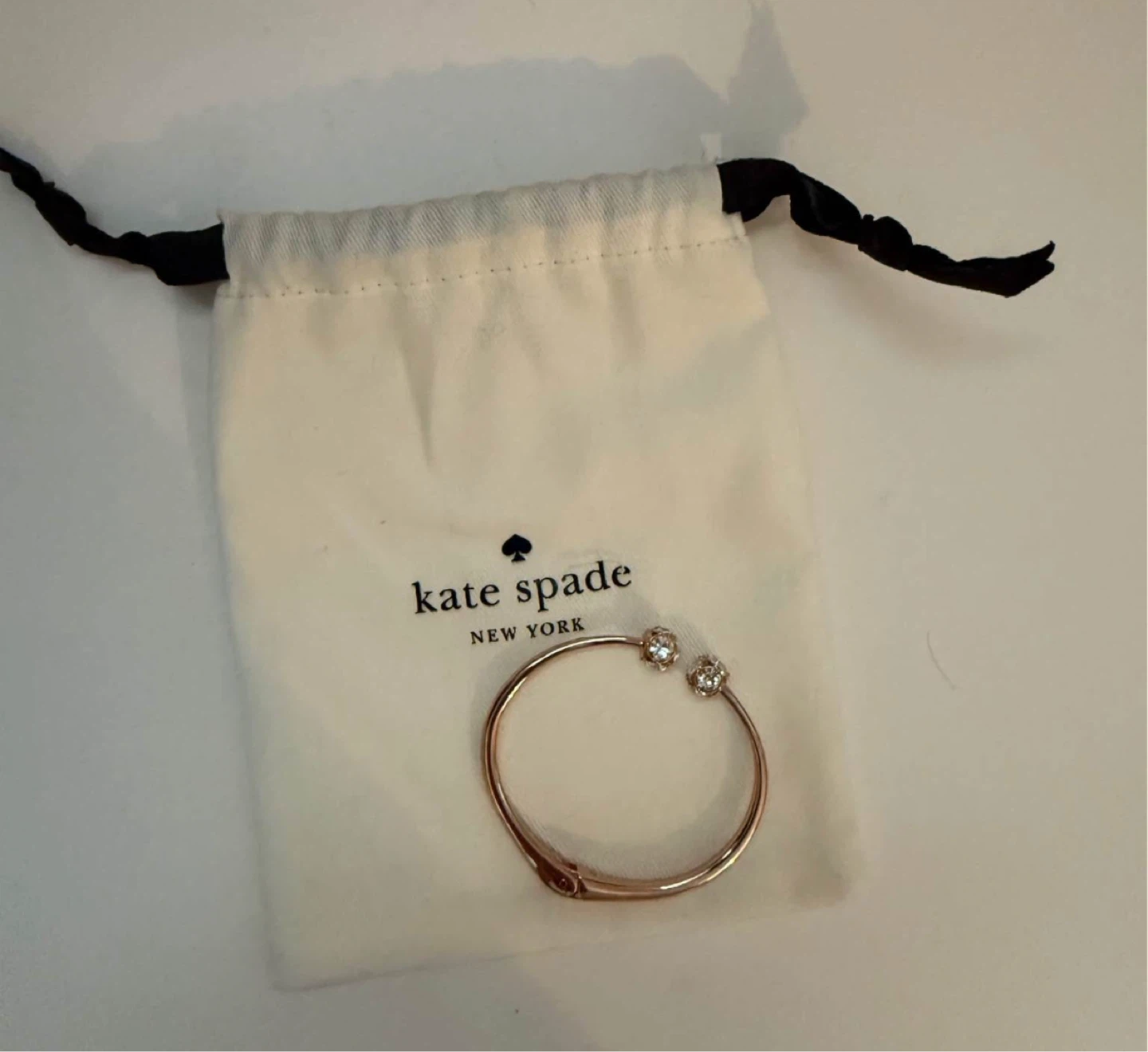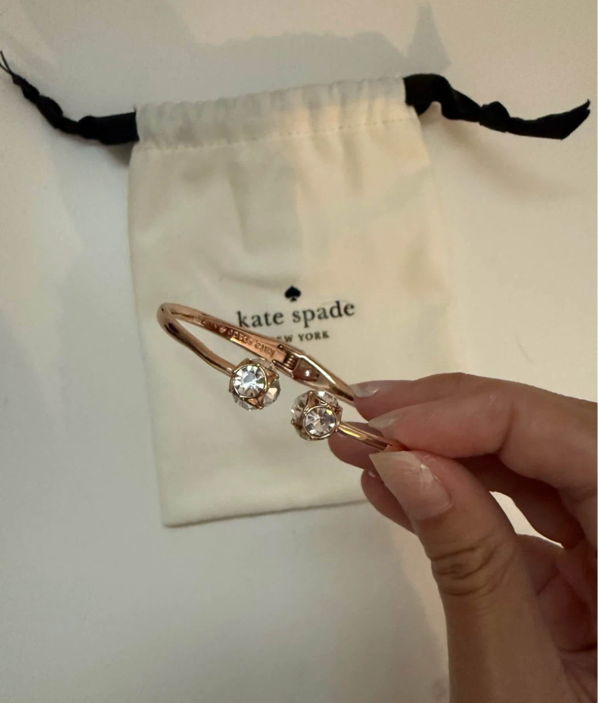 Selling a Kate Spade bangle in rose gold with crystal details! It's a lovely piece to add a touch of sparkle to any outfit. Comes with the original Kate Spade pouch for safekeeping. Perfect accessory or a gift for someone