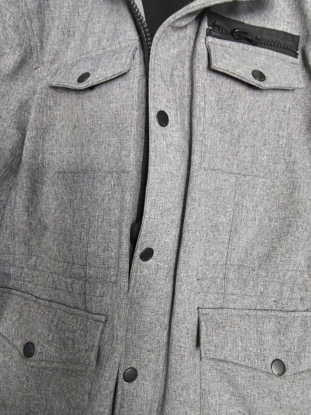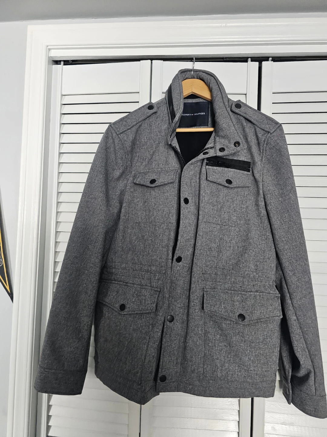 This Tommy Hilfiger field jacket is a stylish and practical outerwear option. It features a durable grey fabric and multiple front pockets. It's suitable for transitional weather.