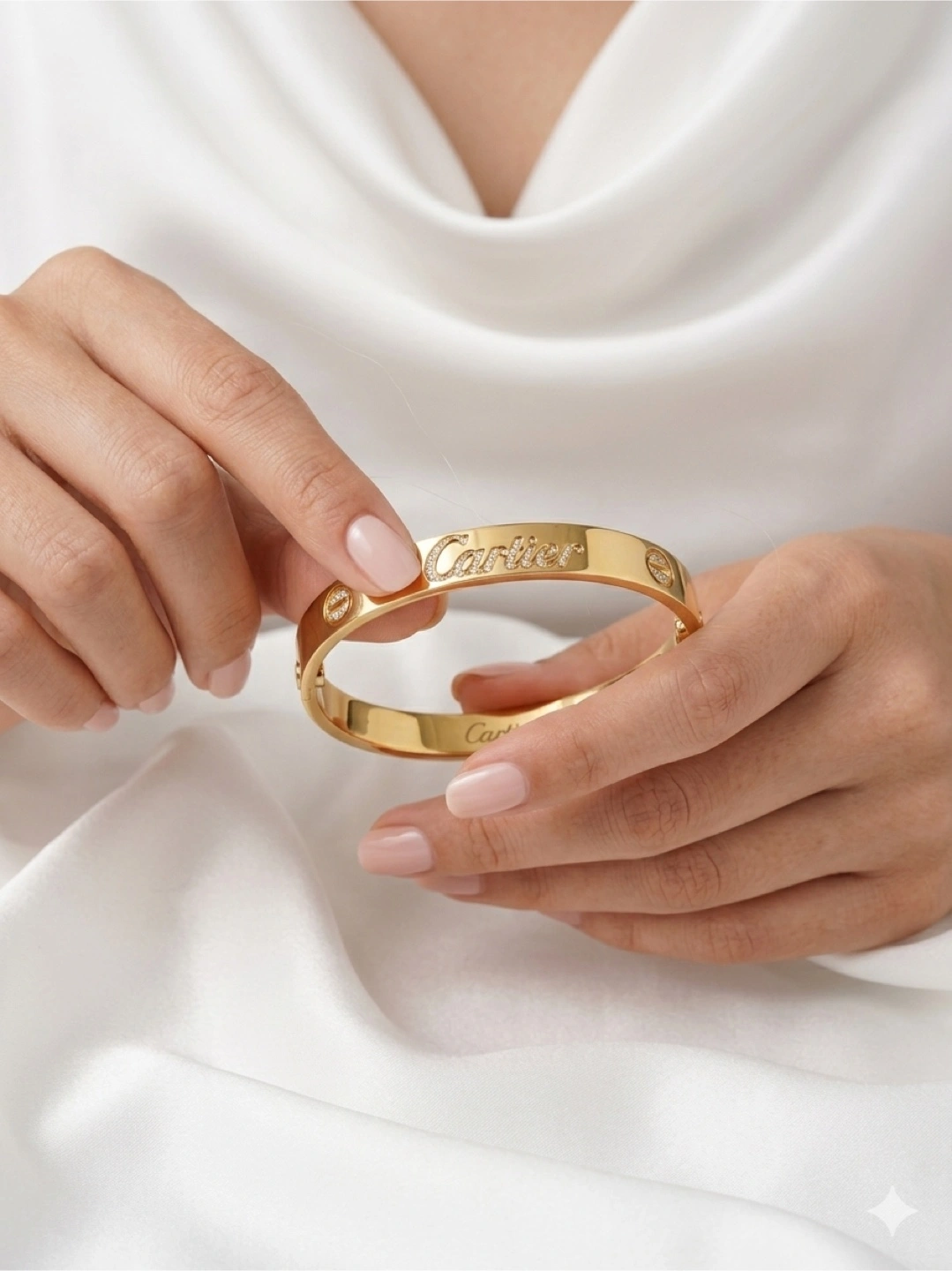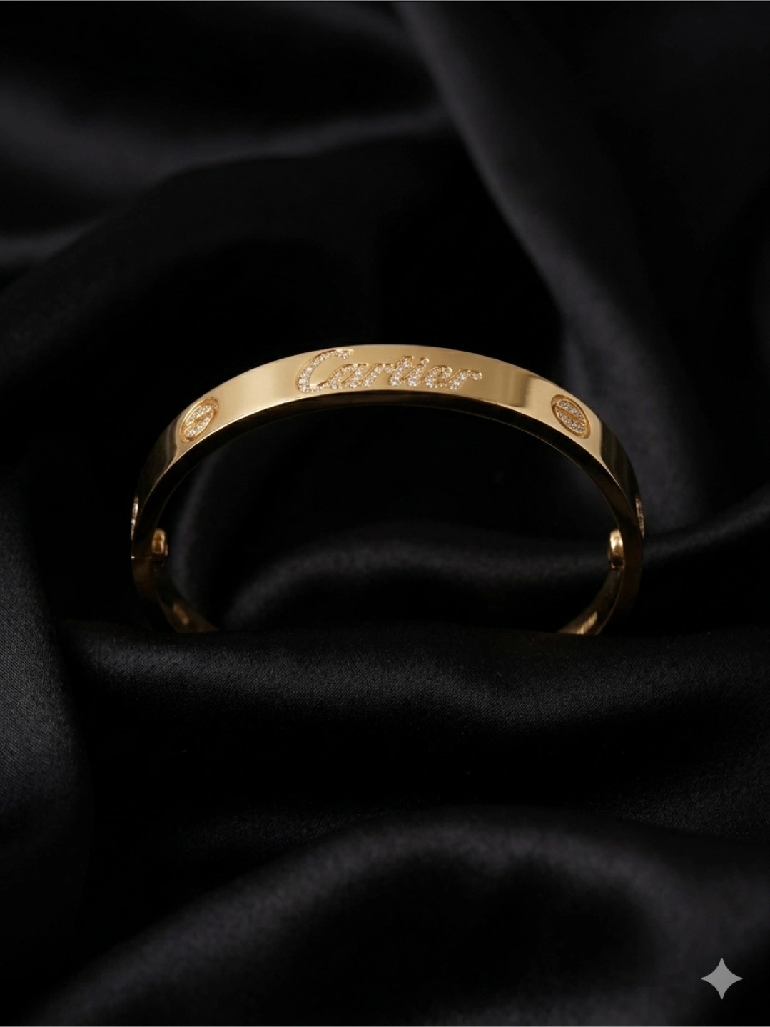 Authentic gold plated Love bracelet. This iconic piece features the signature screw motif and designer engraving. It's a classic accessory for any jewellery collection.
