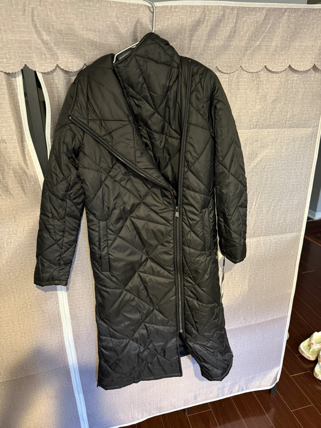 Selling a Karl Lagerfeld black quilted coat in size 35. It's in great condition and originally retailed for $149.99!