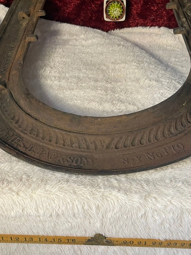Antique 19th Century James L Jackson NY Cast Iron Fire Place Mantle 32” x 26” x 1”. Pickup in Bayview Davisville. Have a look at my other posts; I have many treasures in the shop.