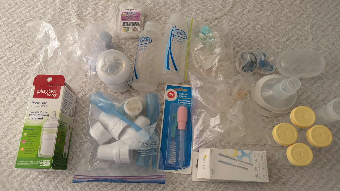 Includes Playtex bottle bags, Dr. Brown's bottles, medicine dropper, nipple brushes and more. Some new in box. All in good condition and ready for a new home!