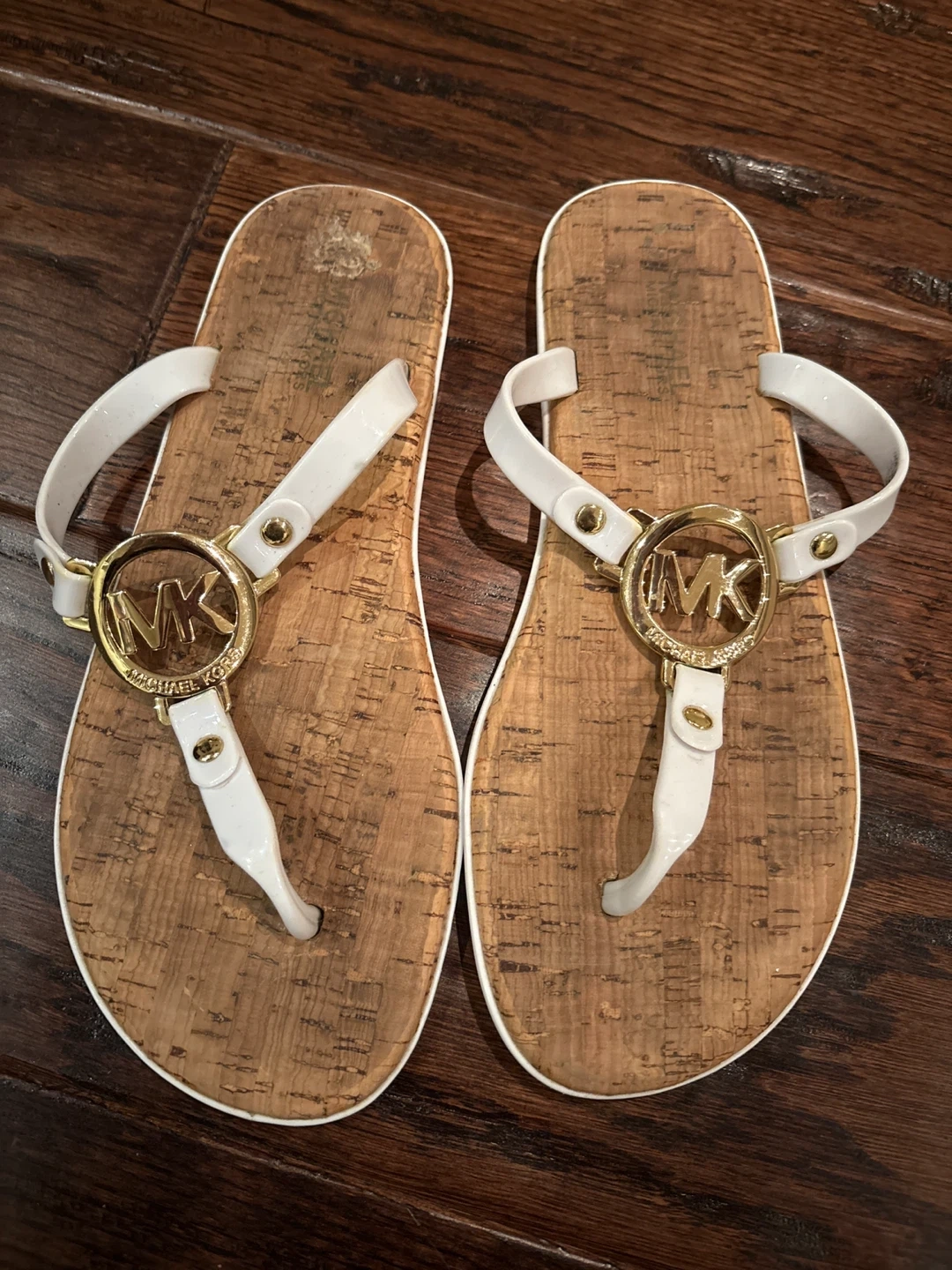 Michael Kors White Cork Flip Flops