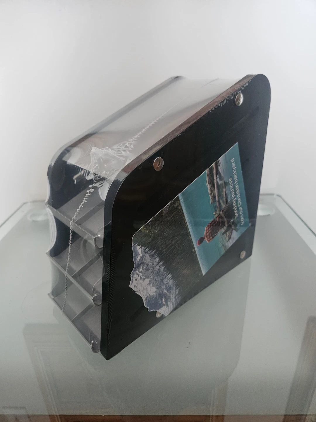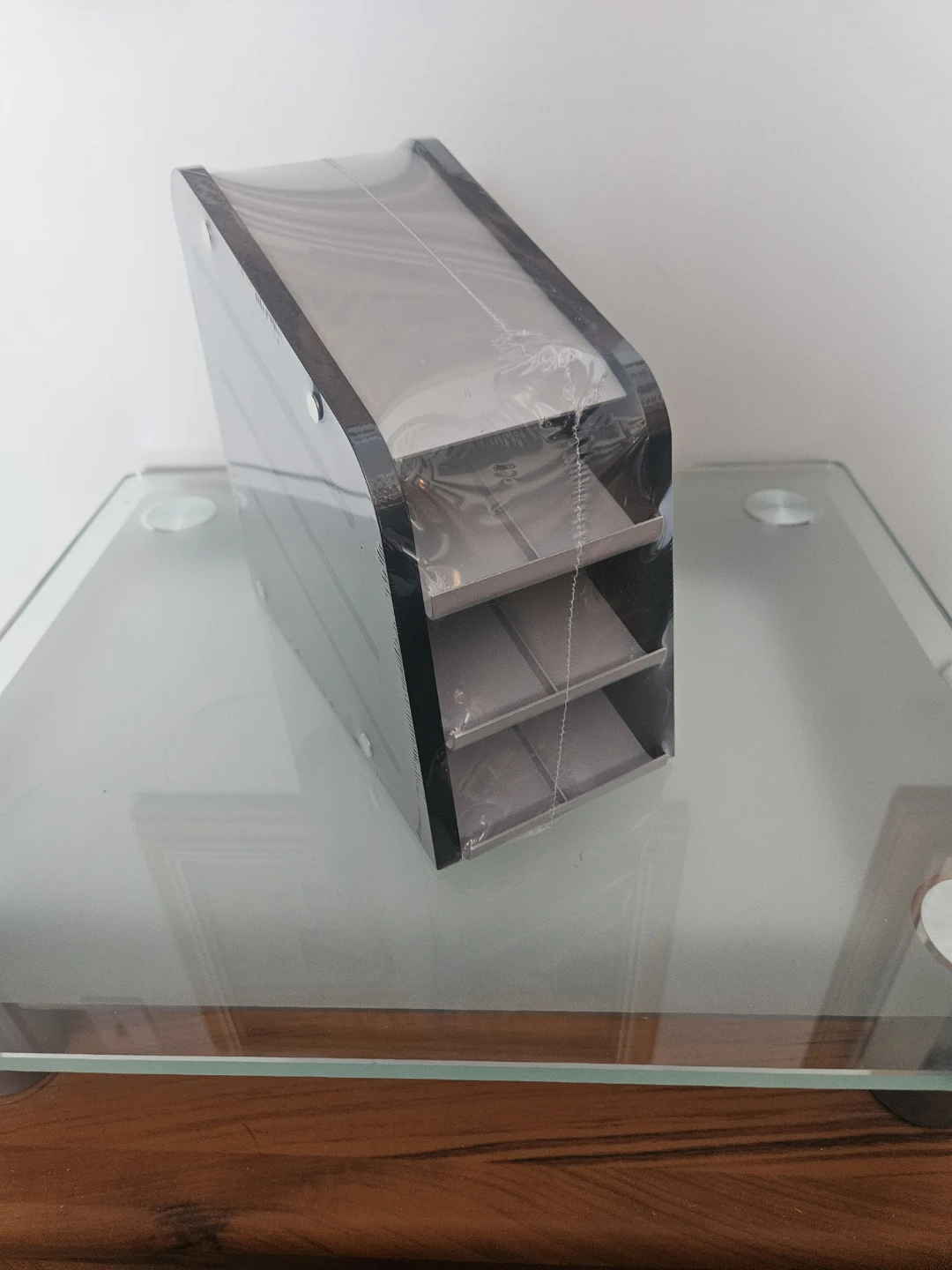 This is a new Nespresso pods dispenser by IBYX. It's a black acrylic dispenser with multiple compartments for organizing your pods. It's designed as a classy solution for your coffee station. It's suitable for anyone who enjoys Nespresso pods and wants to keep them tidy.