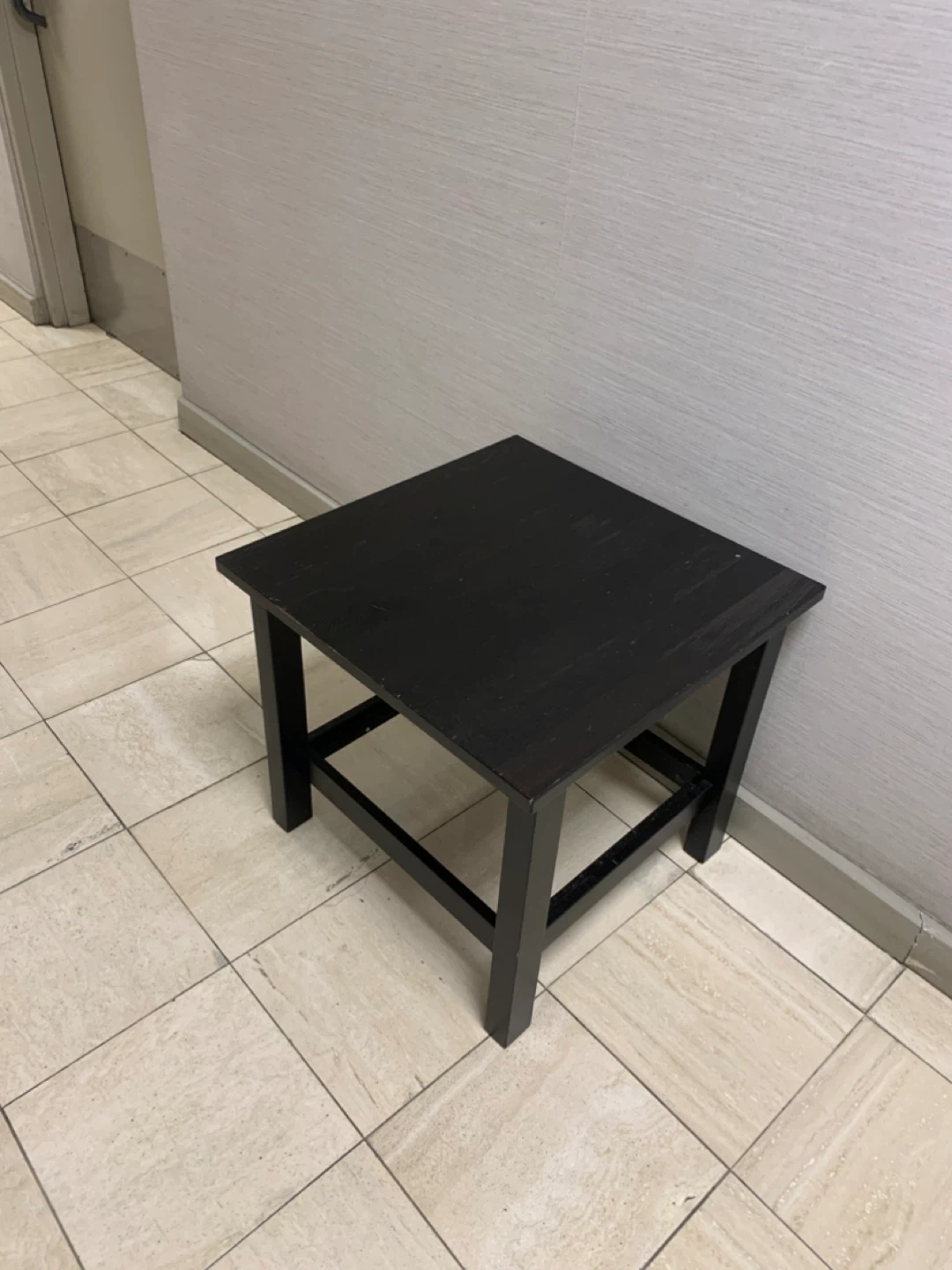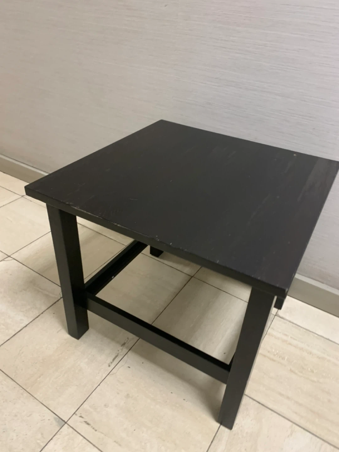 This is a black wooden side table. It's made of wood with a black finish. Great for placing drinks or books next to a sofa or chair.