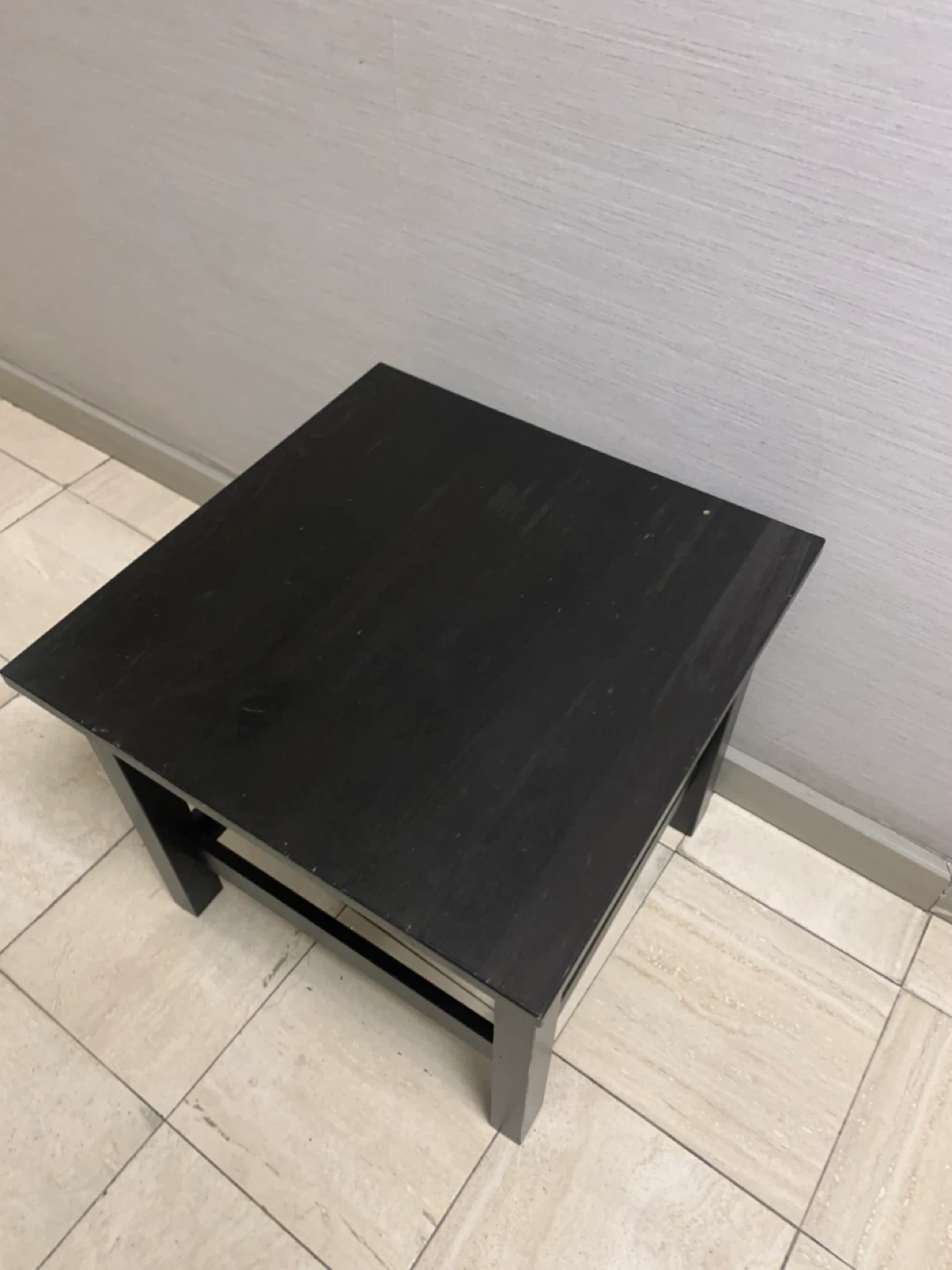 This is a black wooden side table. It's made of wood with a black finish. Great for placing drinks or books next to a sofa or chair.