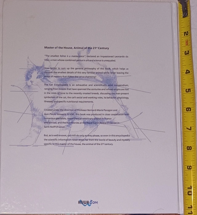 This hardcover book, Volume 3 of The Royal Canin Cat Encyclopedia, offers an exhaustive and scientifically solid compendium on cats. It covers breeds, symbolism, social and working roles, behavior, physiology, illnesses, and nutritional requirements. Created under the direction of Prof. Bernard-Marie Paragon and Jean-Pierre Vaissaire, D.V.M., with input from specialists and veterinarians. Condition is Used - Like new. For Sale By: Owner. Smoke free HOME. Message to arrange PICK UP ONLY.
