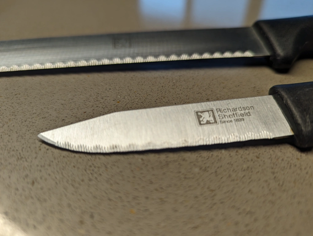 A couple of knives that I don't use from my set. It's a year old but never used. Still sharp and clean.
