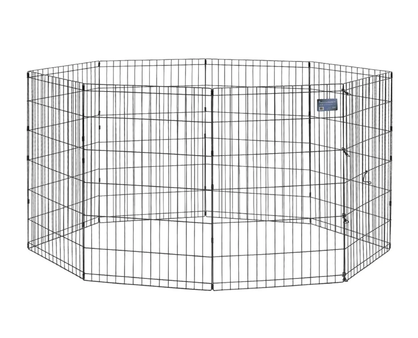 Provide your dog with access while keeping him contained with this Top Paw Split Door Exercise Pen. This pen is a great alternative to a fenced-in yard. It provides space to play while keeping your dog safely confined in a desired location. Its features also include step-through access with a convenient, sturdy-framed door, as well as the ability to accommodate a wire crate for added security and comfort.