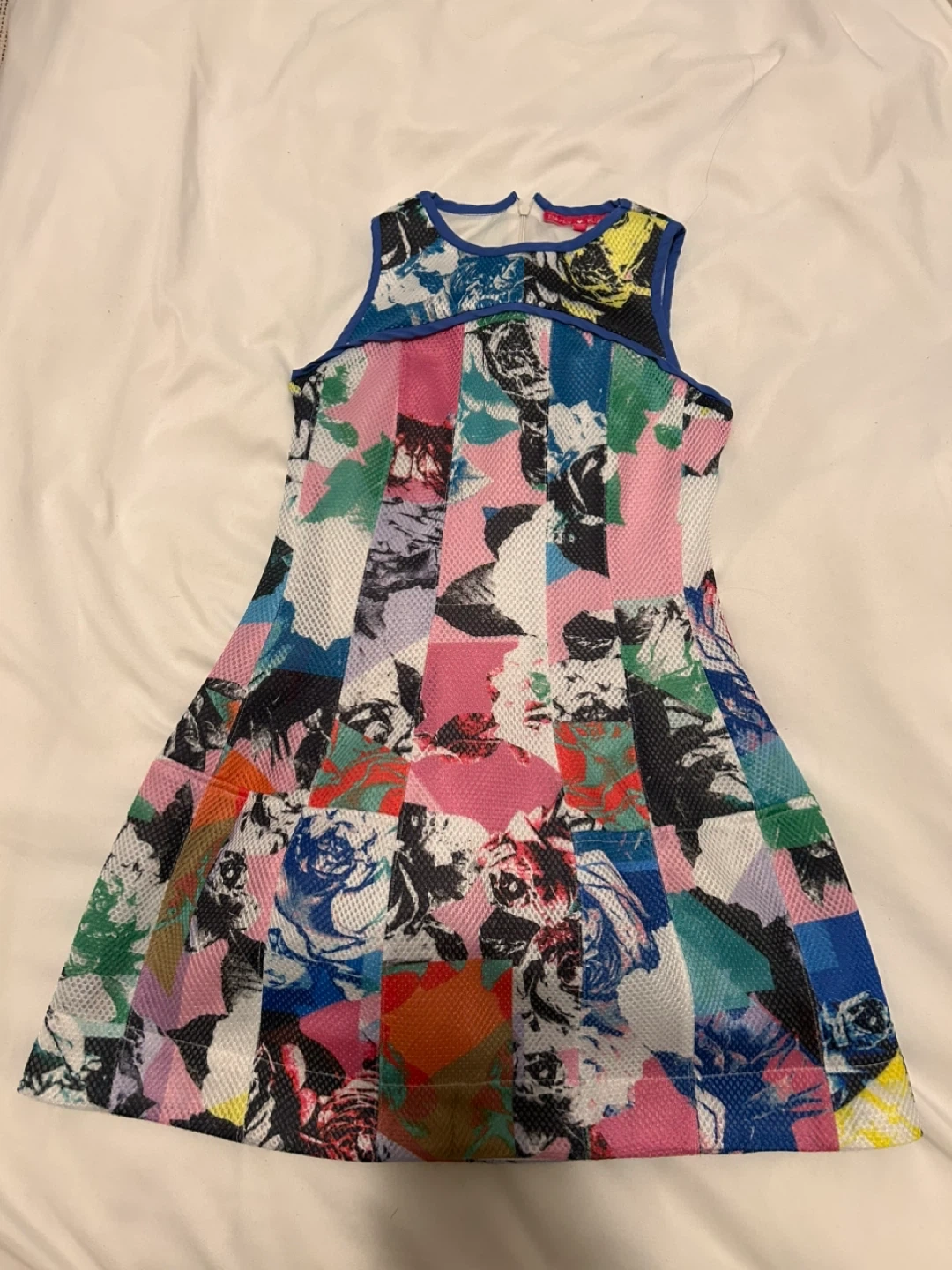 Cute sleeveless dress by Derhy Kids. Features a colourful pop art floral graphics. Size 8/10.
