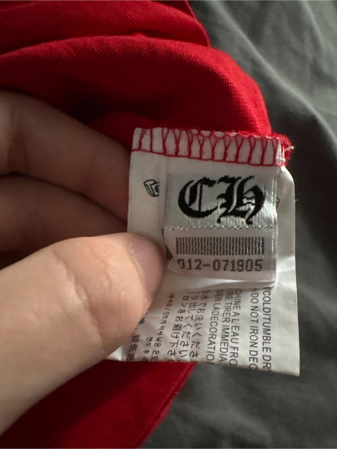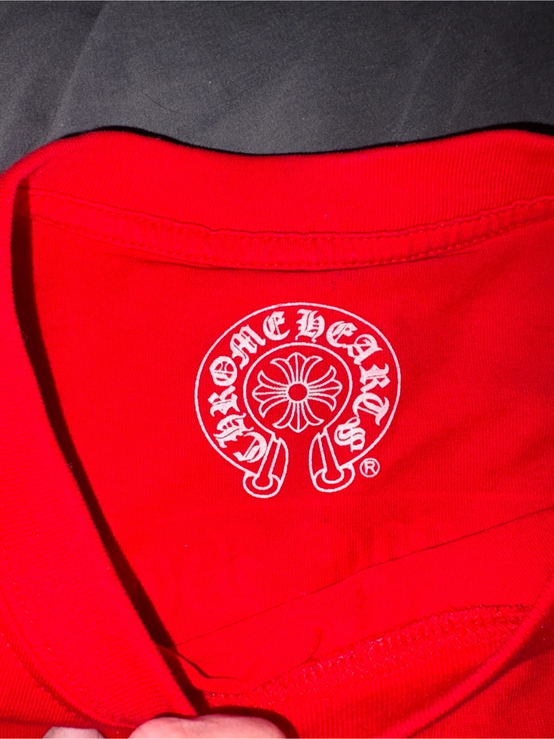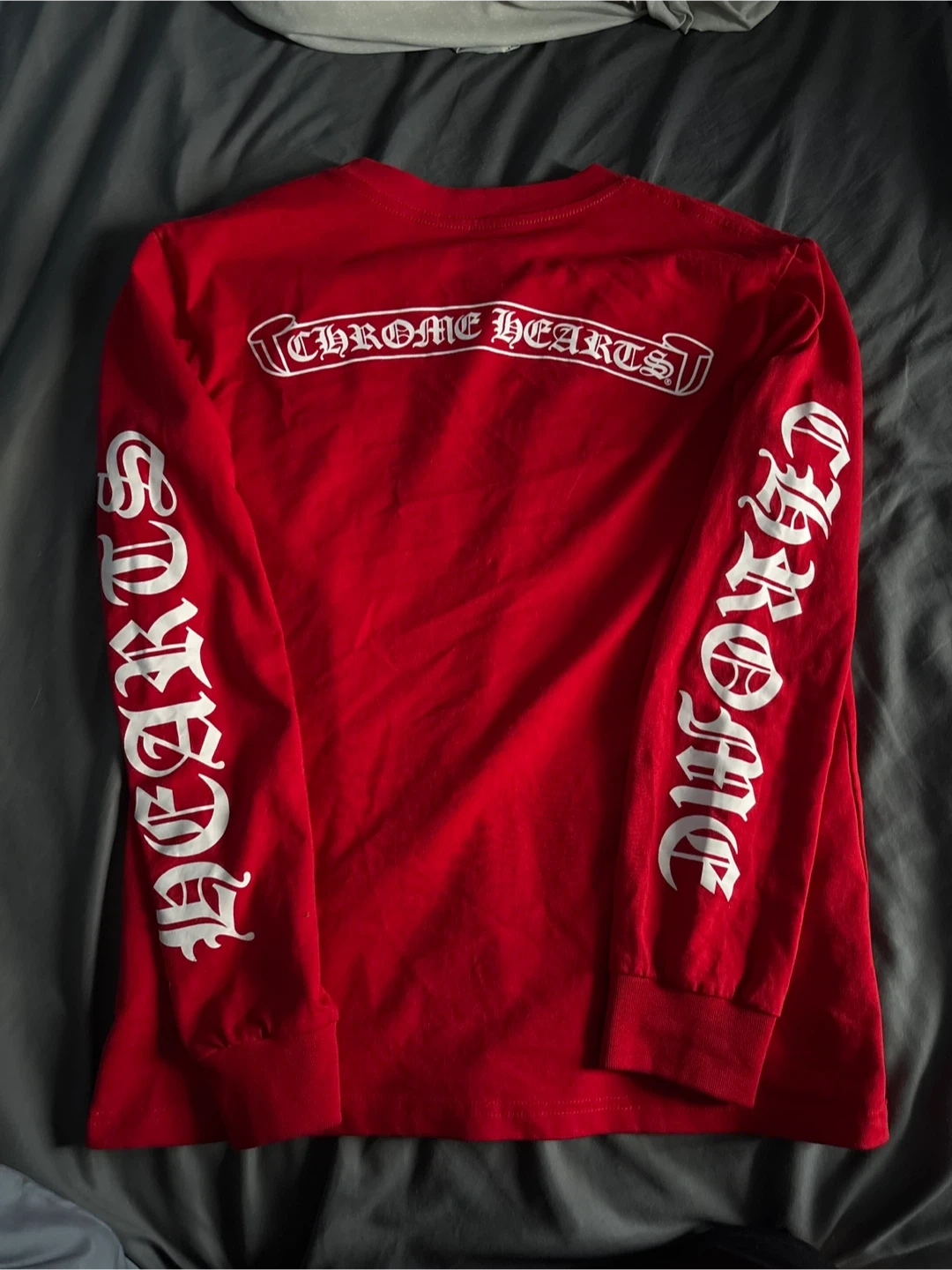 This is a red long sleeve t-shirt from Chrome Hearts. It's made of 100% cotton.