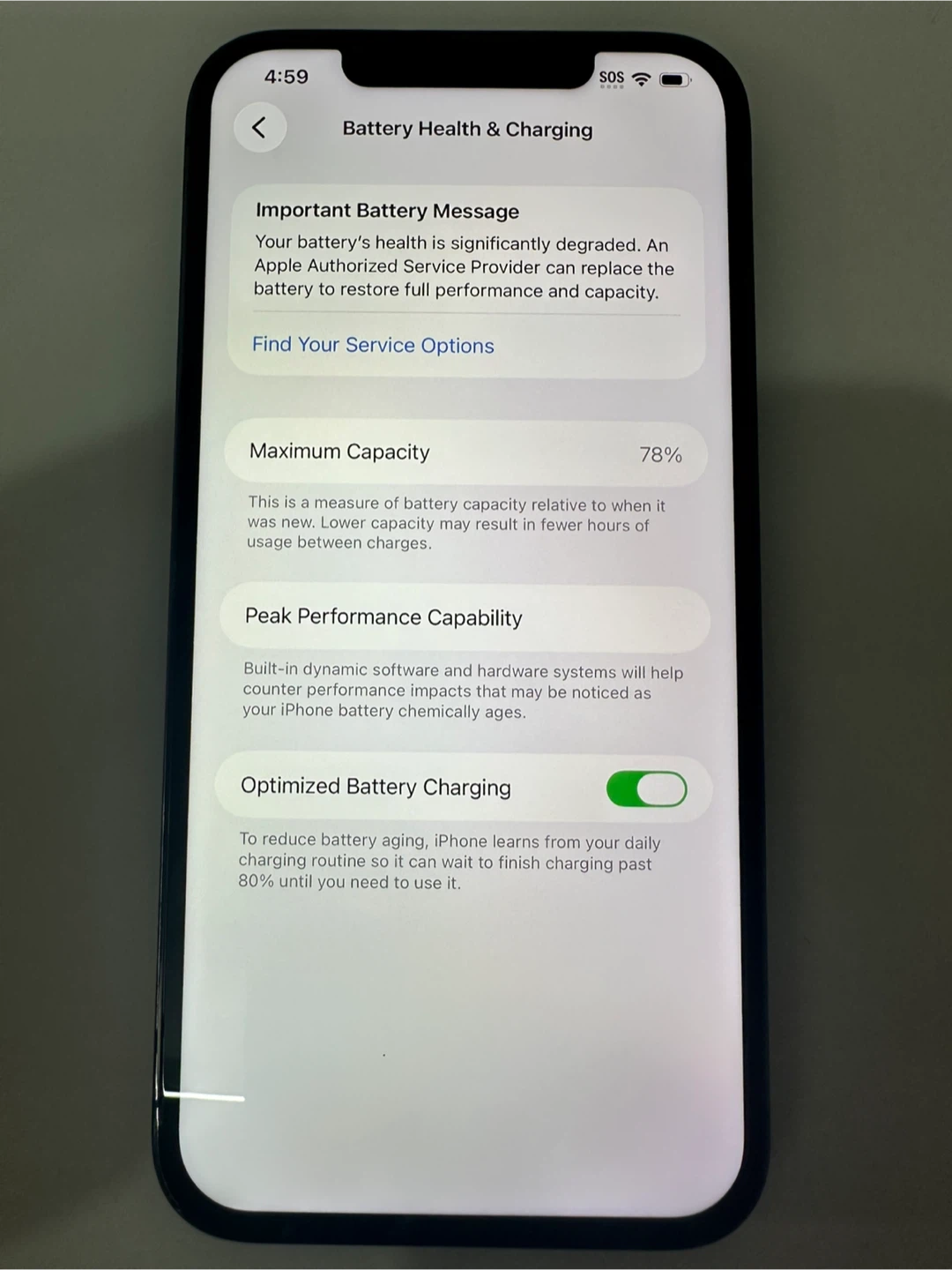 Battery Health = 78%.