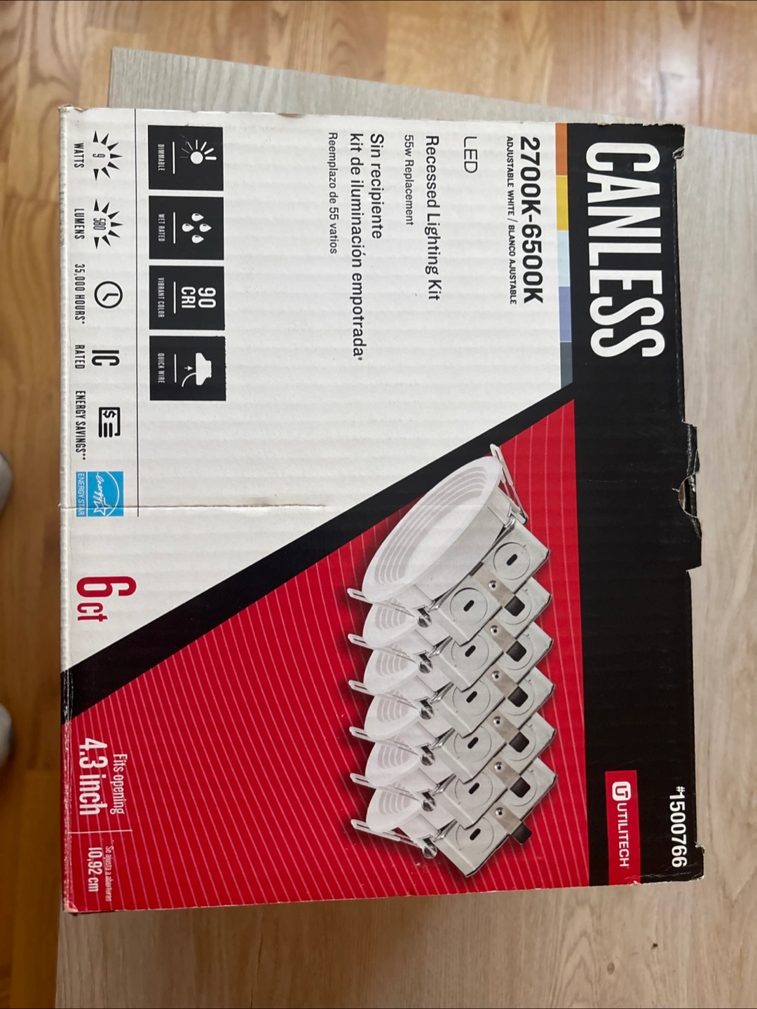 I'm selling a brand new UTLTECH Canless LED Recessed Lighting Kit. It's an adjustable white/blanco ajustable kit.