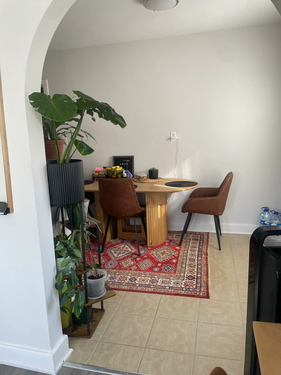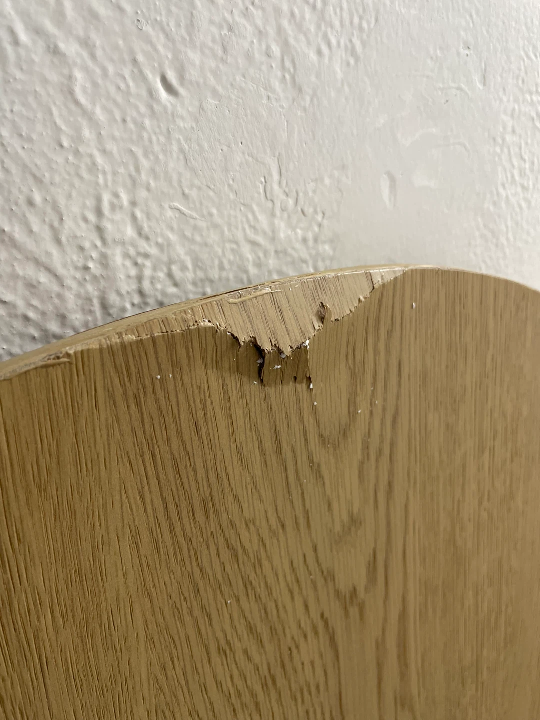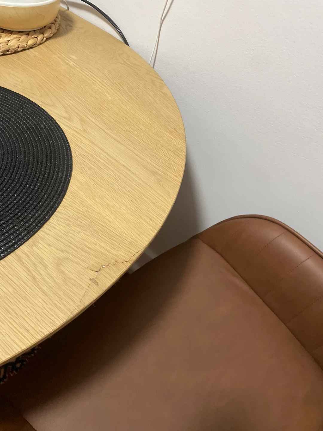 * pricing based on mug stain, as well as damage at the tip of the table (I put table mats over to cover it).