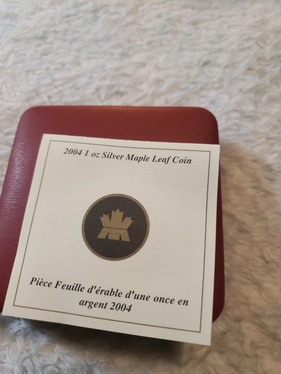 Silver maple leaf coin, well kept in its original package from the Royal Canadian Mint. Coin comes enclosed in a plastic capsol a leather case and box , a Certificate of Authenticity.