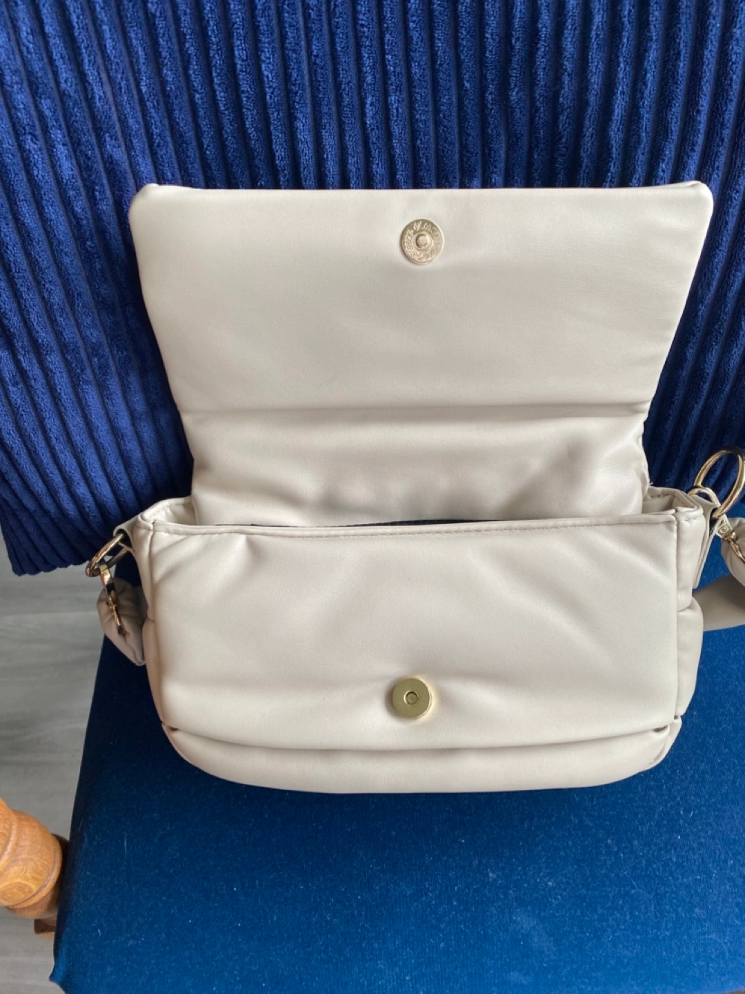 Cute cream shoulder bag with gold hardware in great condition. Similar style to Coach Pillow Tabby bag. Holds a lot of things!
