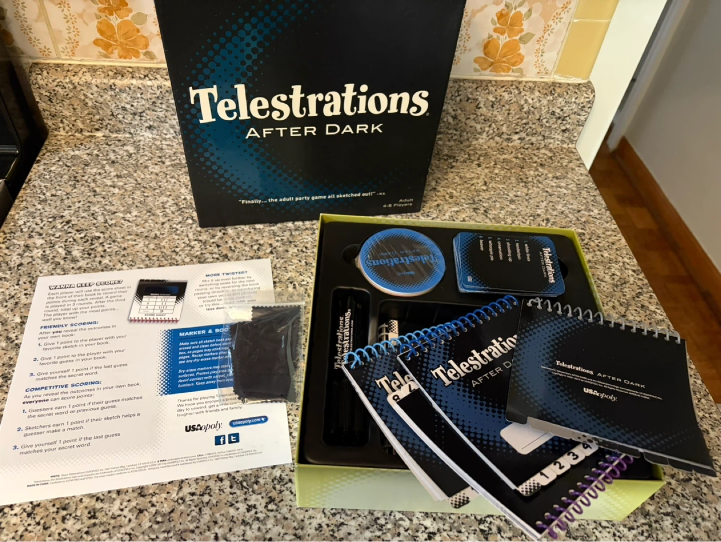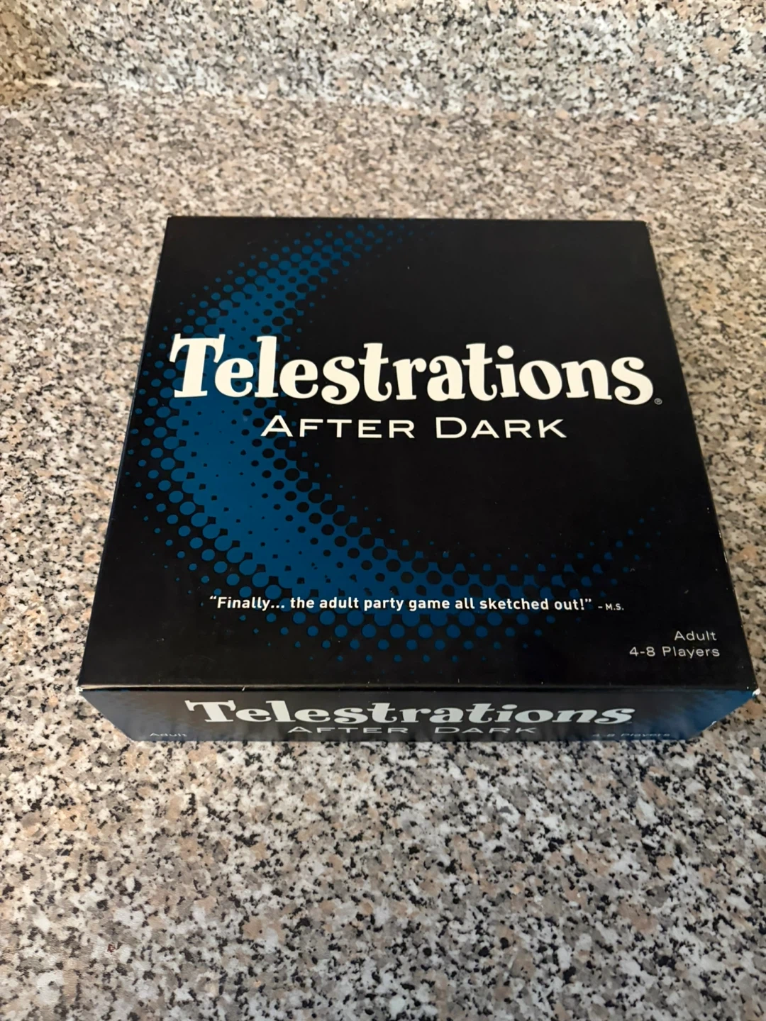 This is the Telestrations After Dark party game for 4-8 players. It includes game boards, markers, and sketchbooks. It's the adult party game all sketched out!