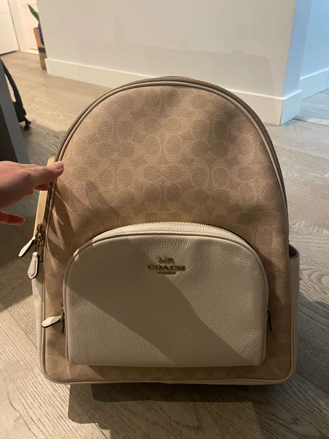 This Coach Sig LG Court Backpack comes in the IM/Sand/Chalk colour. The original tag shows a comparable value of $610 CAD. It's in great condition and ready for a new home