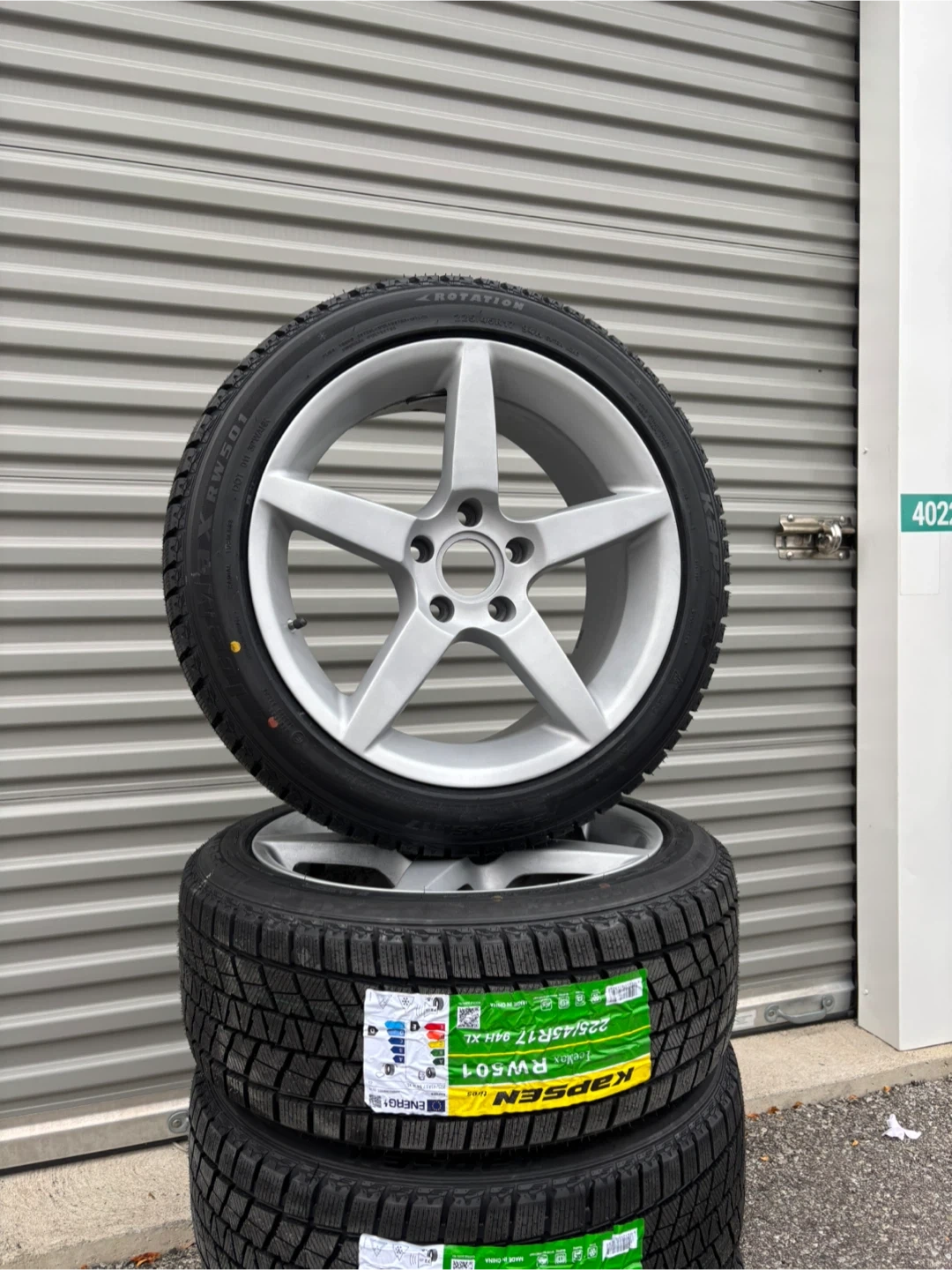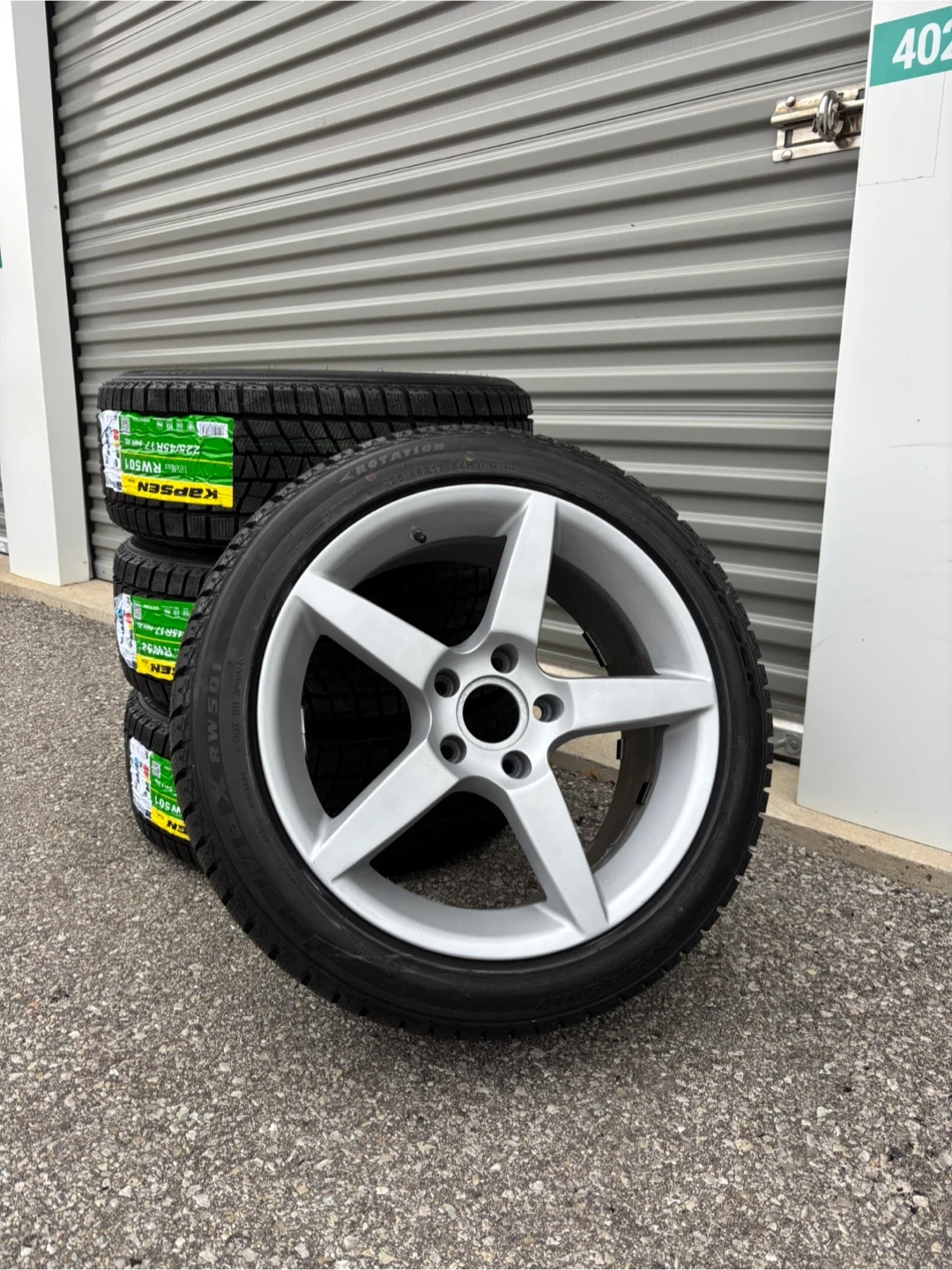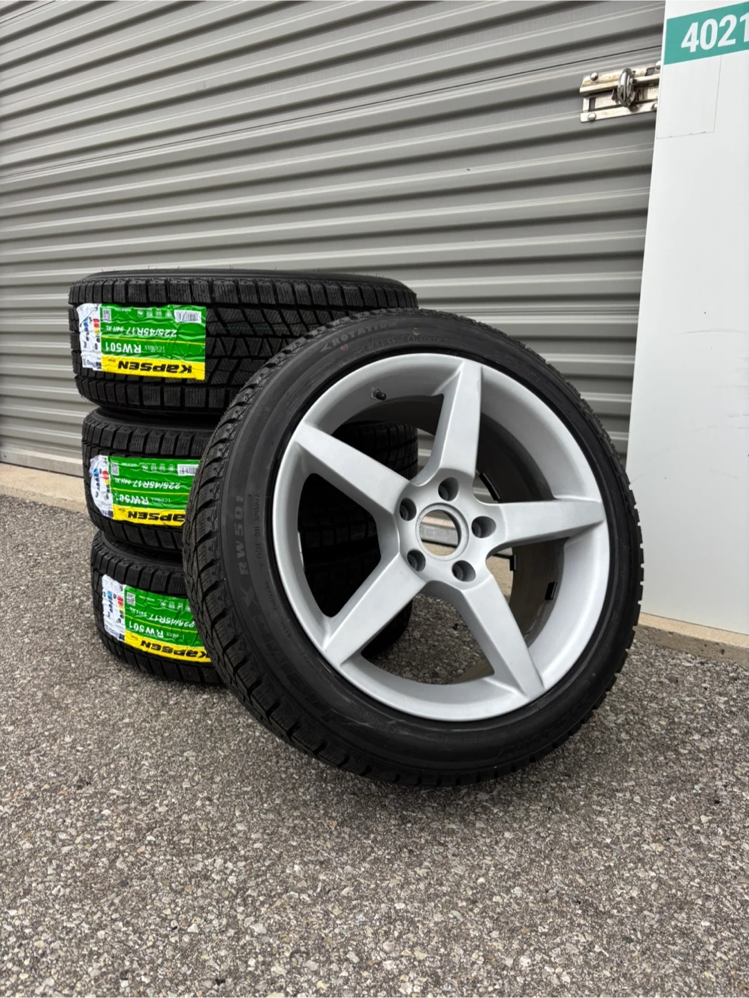 15Selling a set of 5x114.3 rims with new winter tires. 5x114.3 bolt pattern 76.2 hub bore 17x8 40 offset No bends or cracks, minor imperfections. Solid set of aftermarket wheels. 225/45/R17 kapsen icemax winter tires. Brand new 2025 DOT. Just mounted and balanced. No issues. Ready to be mounted to your vehicle! Serious buyers only, pickup only Kennedy and mayfield caledon.