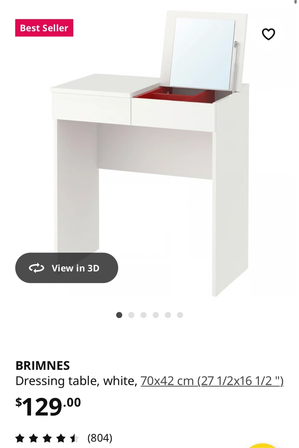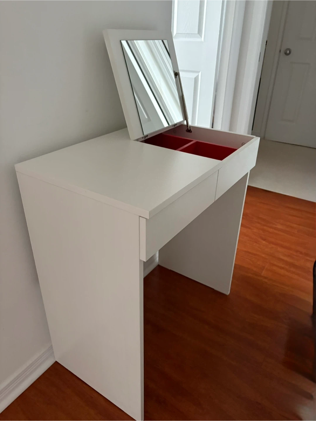 Selling a white IKEA Brimnes dressing table. It's in excellent shape. The table has a handy mirror that flips up and a drawer for storage. Can be used as a desk or dressing table.