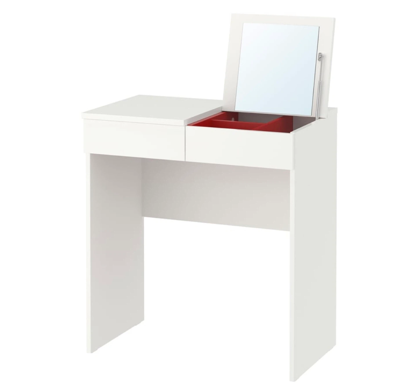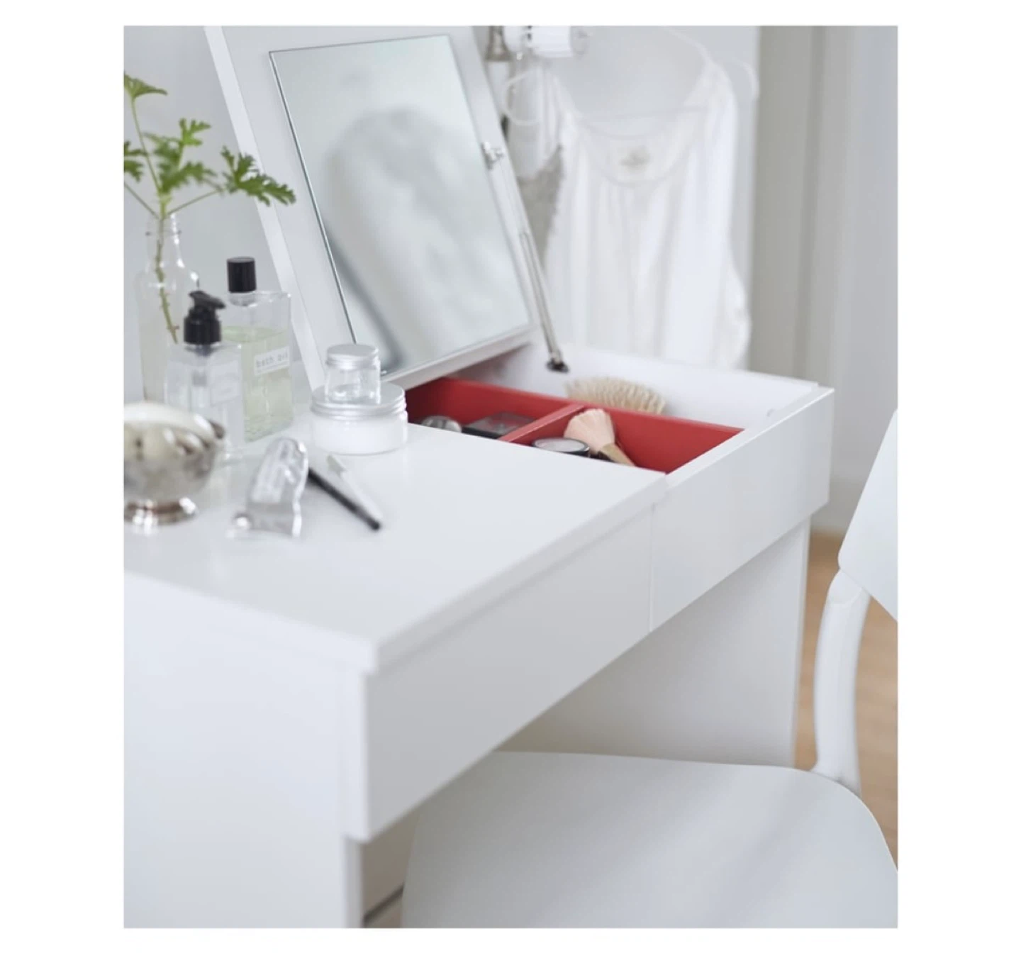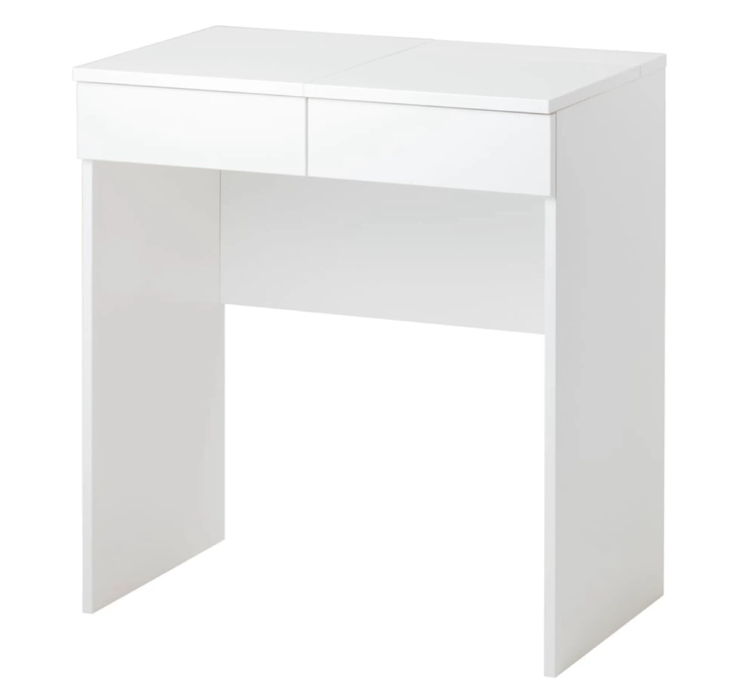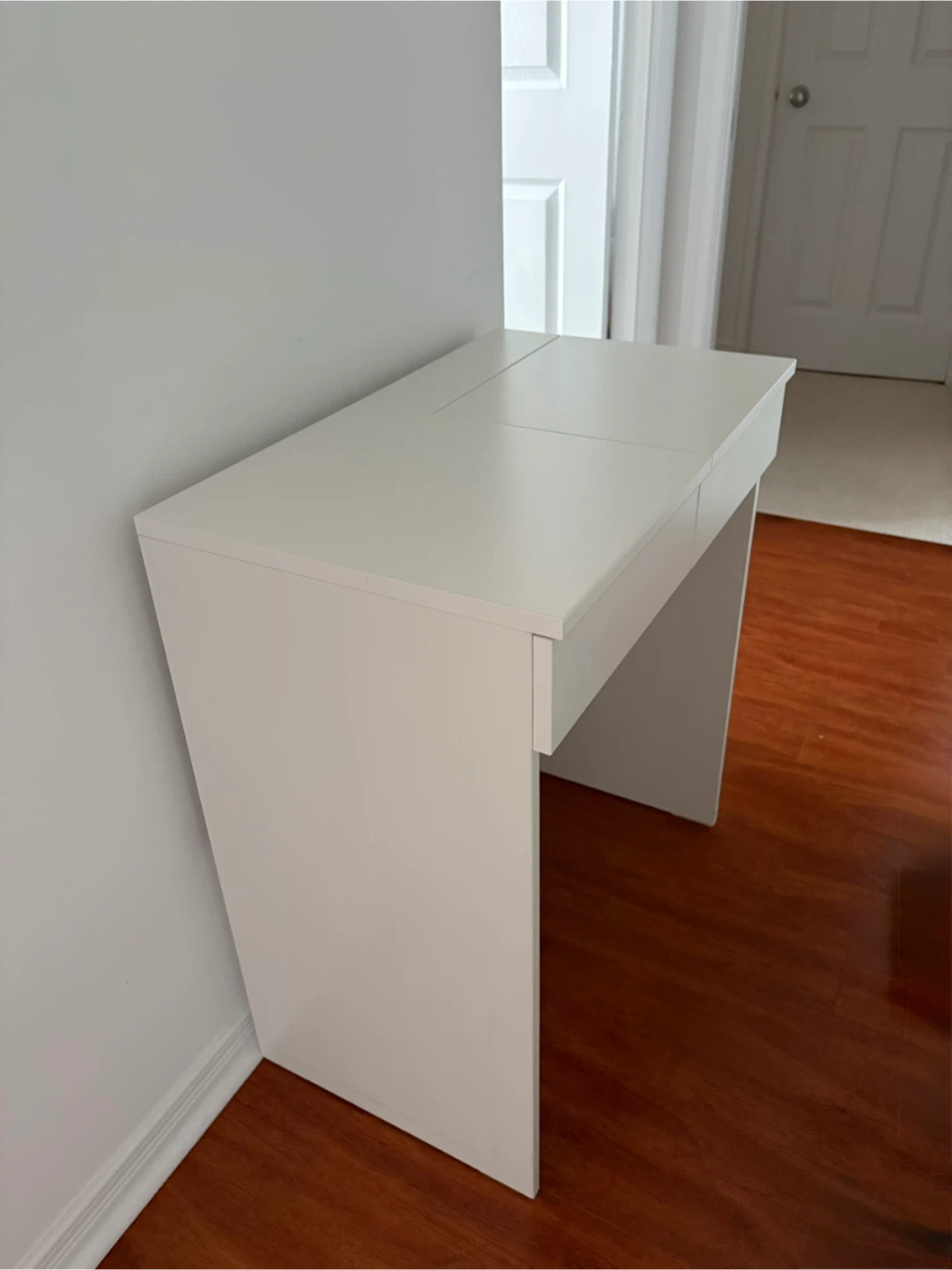 Selling a white IKEA Brimnes dressing table. It's in excellent shape. The table has a handy mirror that flips up and a drawer for storage. Can be used as a desk or dressing table.