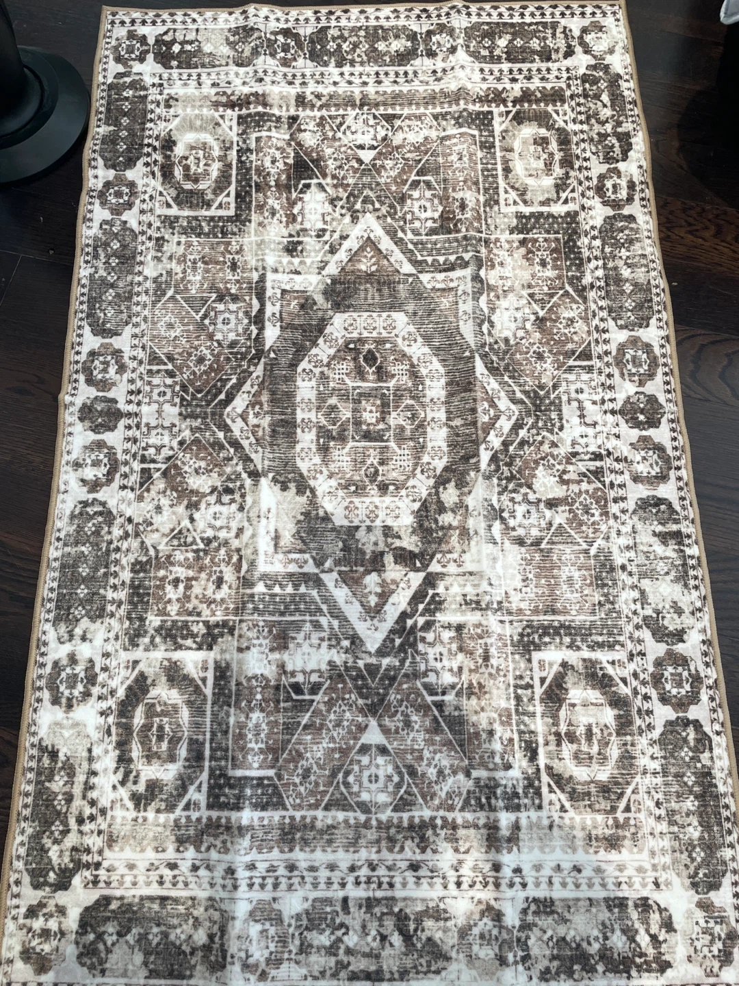 36New 5x3 area rug. Great for small spaces like entryway. Its machine washable and anti slip back.