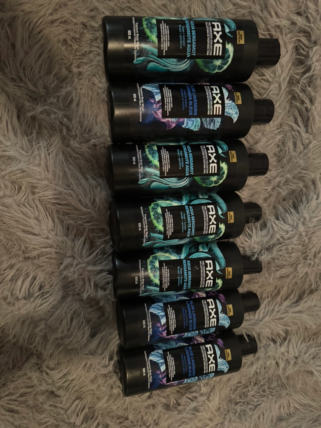 I have some Axe body wash for sale! They are 532ml bottles in the Aqua Bergamot and Blue Lavender scents. They're part of the Fine Fragrance Collection. Get that fresh feeling!