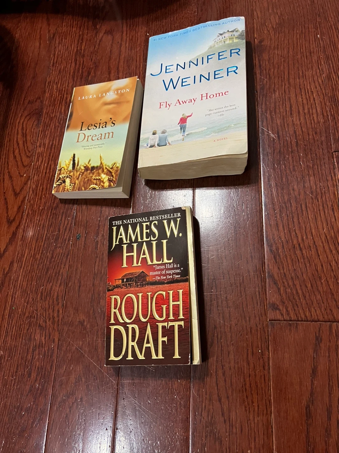 - Jennifer Weiner's "Fly Away Home" (this one has water damage from when my water bottle leaked in my purse)