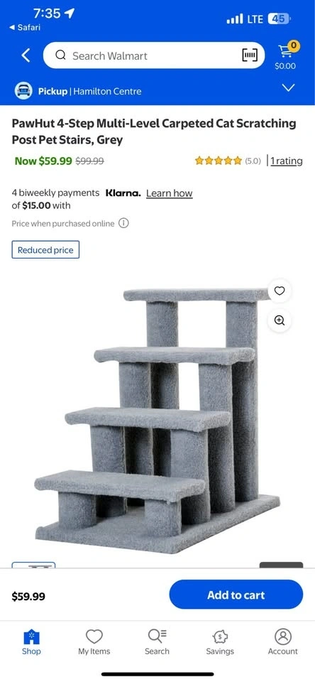 Looking to help your cat and protect your furniture? The PawHut 4-Step Cat Scratching Post Bed is suitable for senior or arthritic pets, allowing easy access to their bed or favorite perch. Made from stable engineered wood, it supports pets up to 44lbs. (20 kg). Plush faux fleece steps are soft on paws yet robust for scratching, climbing, and lounging. The multilevel design with 8 posts encourages natural behaviors while keeping your furniture safe. Suitable for both play and rest! Features: Scratching post cat steps with 4 steps and 8 posts for pets to scratch, climb and play on. Brand new, sealed. 3 available. $30 each.
