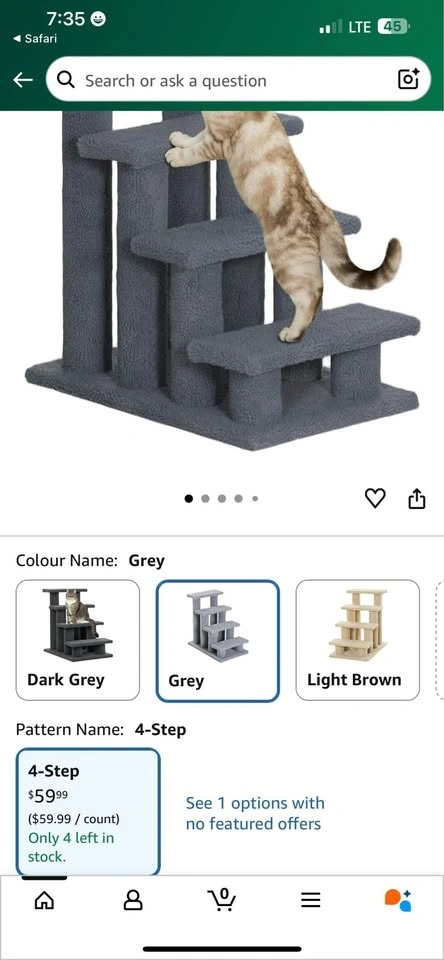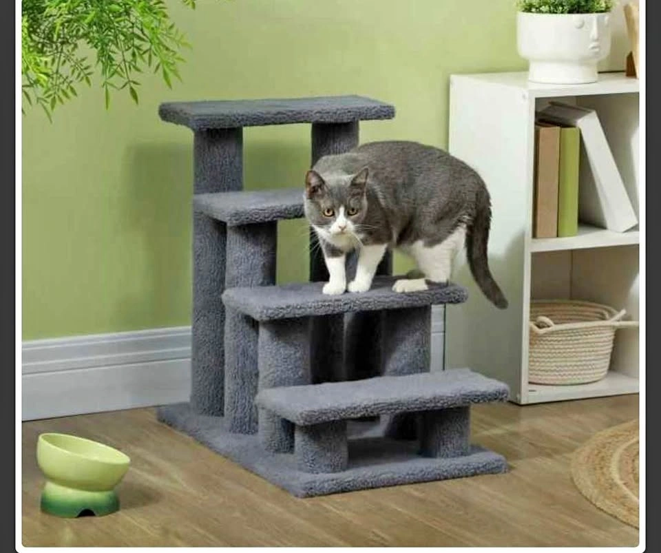 Looking to help your cat and protect your furniture? The PawHut 4-Step Cat Scratching Post Bed is suitable for senior or arthritic pets, allowing easy access to their bed or favorite perch. Made from stable engineered wood, it supports pets up to 44lbs. (20 kg). Plush faux fleece steps are soft on paws yet robust for scratching, climbing, and lounging. The multilevel design with 8 posts encourages natural behaviors while keeping your furniture safe. Suitable for both play and rest! Features: Scratching post cat steps with 4 steps and 8 posts for pets to scratch, climb and play on. Brand new, sealed. 3 available. $30 each.