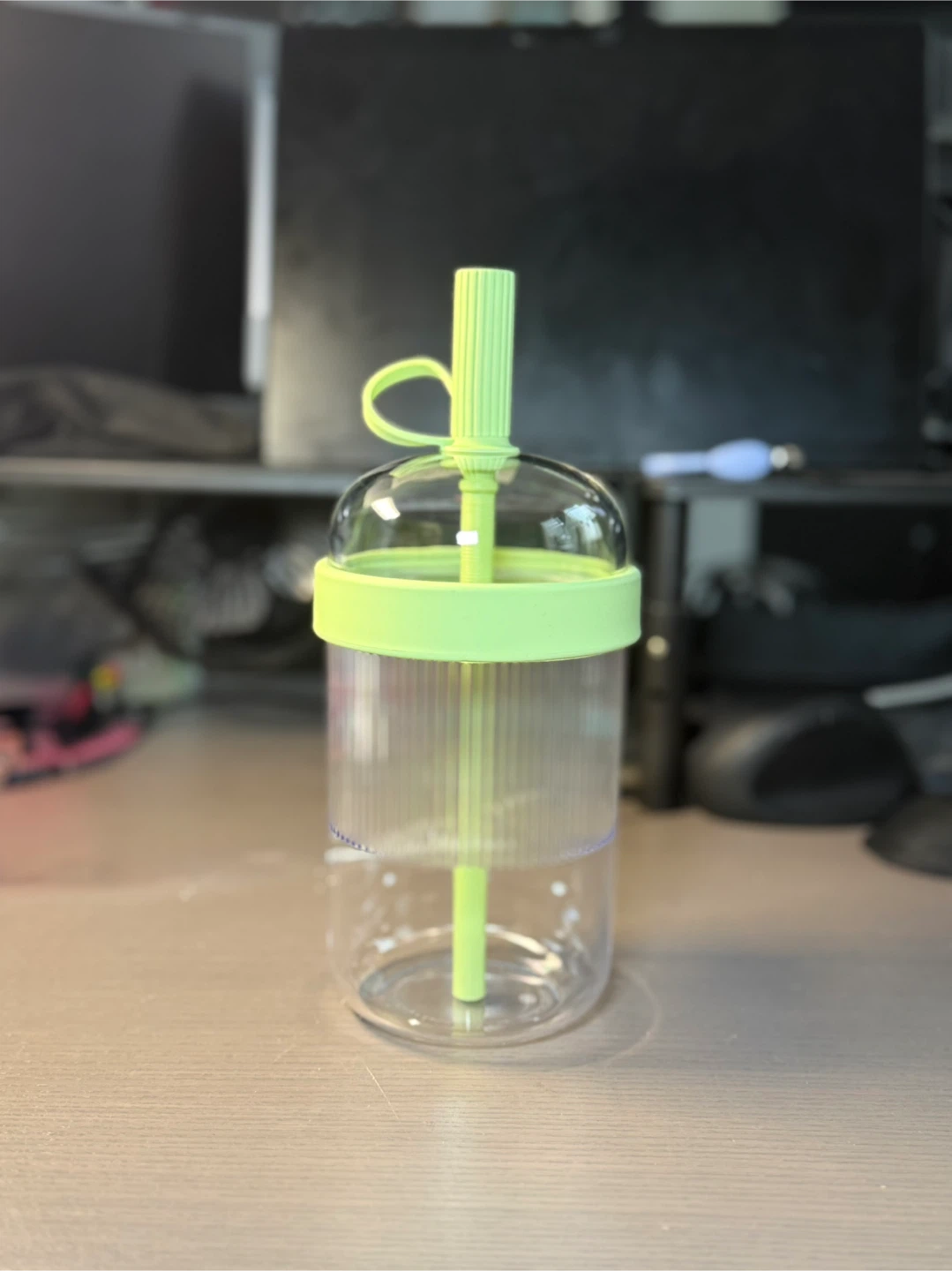 Brand new. 540 mL (18 oz) capacity. Clear Tritan body with ribbed grip band, lid, and straw in pistachio green. Everything included as shown in the photos.