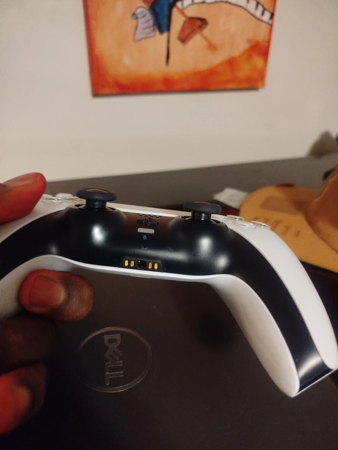 This is a white Sony PlayStation 5 DualSense wireless controller. It features haptic feedback and adaptive triggers for an immersive gaming experience. The controller has a USB-C charging port on the top. It's a great option for upgrading your PS5 gaming setup!
