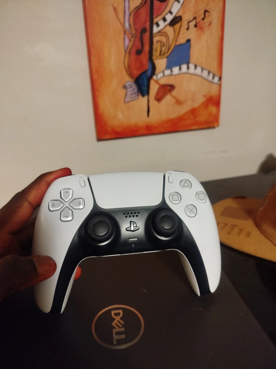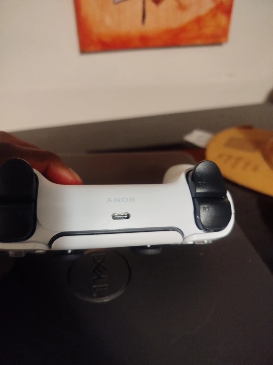 This is a white Sony PlayStation 5 DualSense wireless controller. It features haptic feedback and adaptive triggers for an immersive gaming experience. The controller has a USB-C charging port on the top. It's a great option for upgrading your PS5 gaming setup!