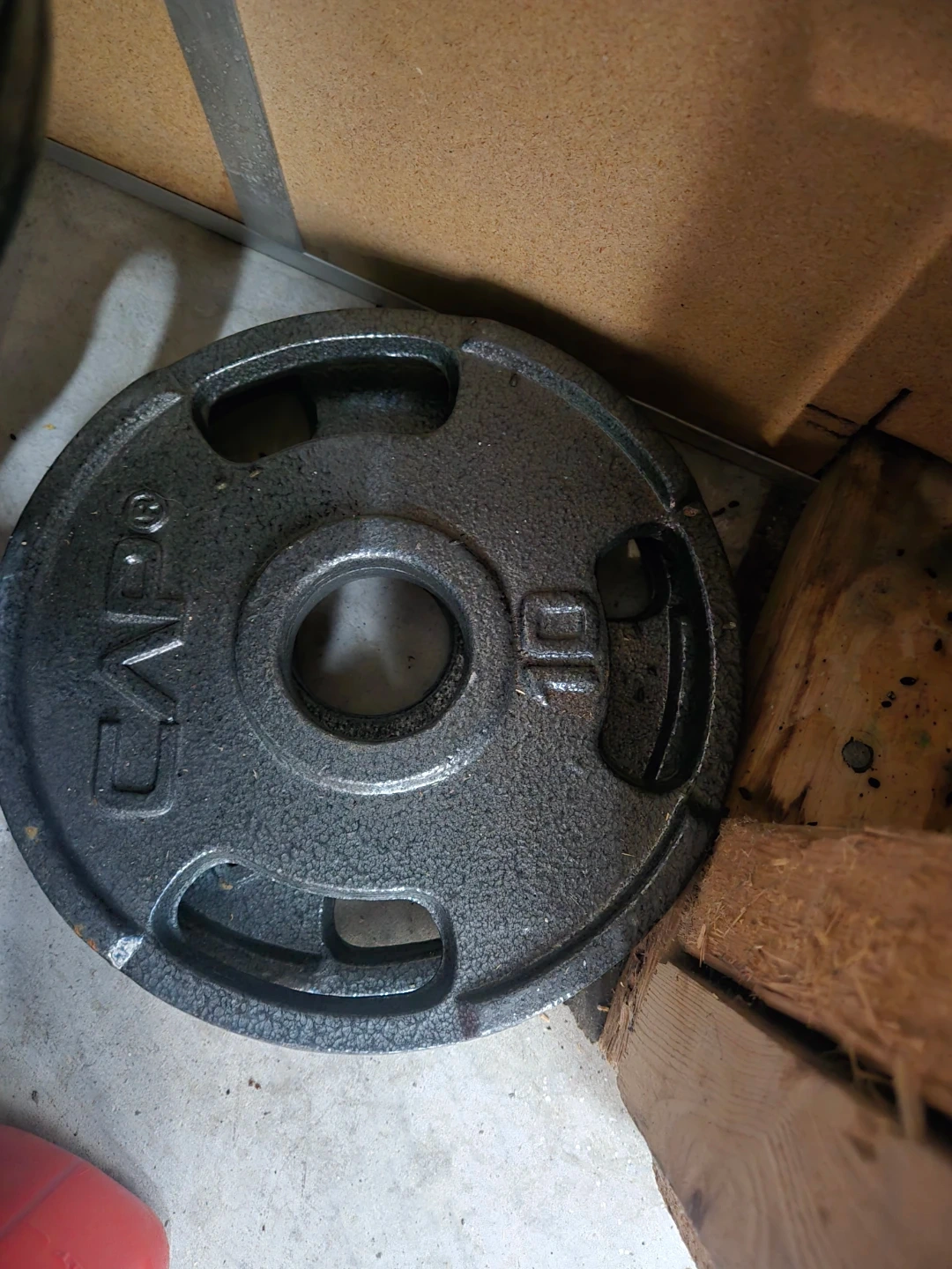This is a CAP Barbell handle with two 10lb weight plates. They're great for home workouts! 4 × 10lbs plates and 2 × 5lbs plates