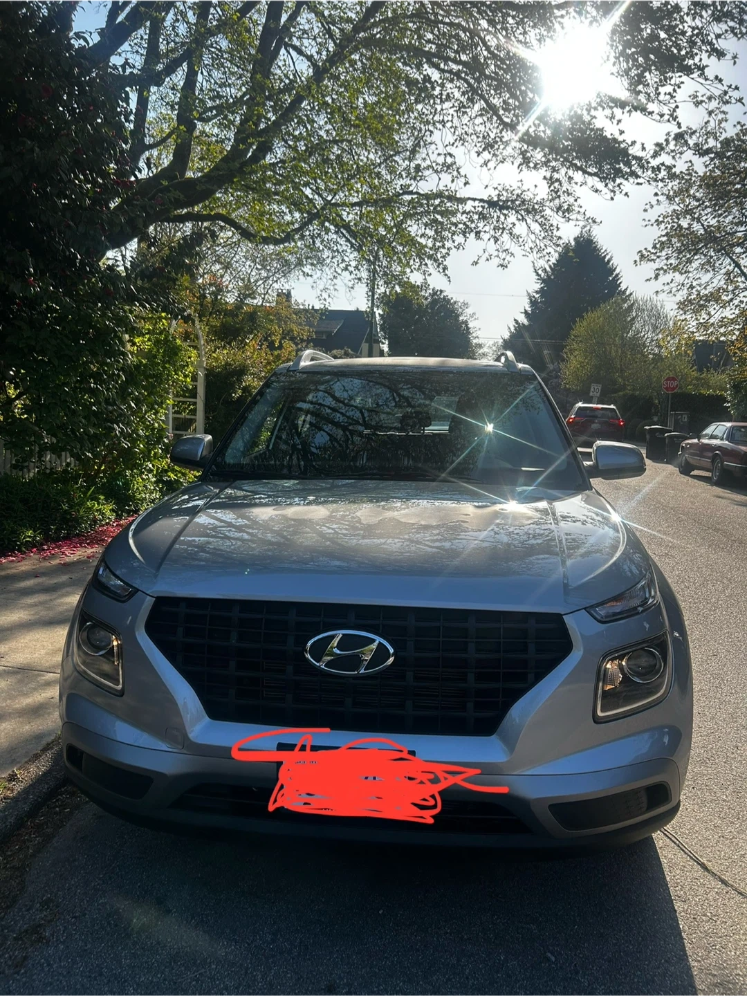 Silver Hyundai Venue SUV. It's a 2025 model with 10,505 km on it. This vehicle is practically new and has a roof rack. Great for city driving! Very good on gas. I moved closer to work so no need for car anymore.