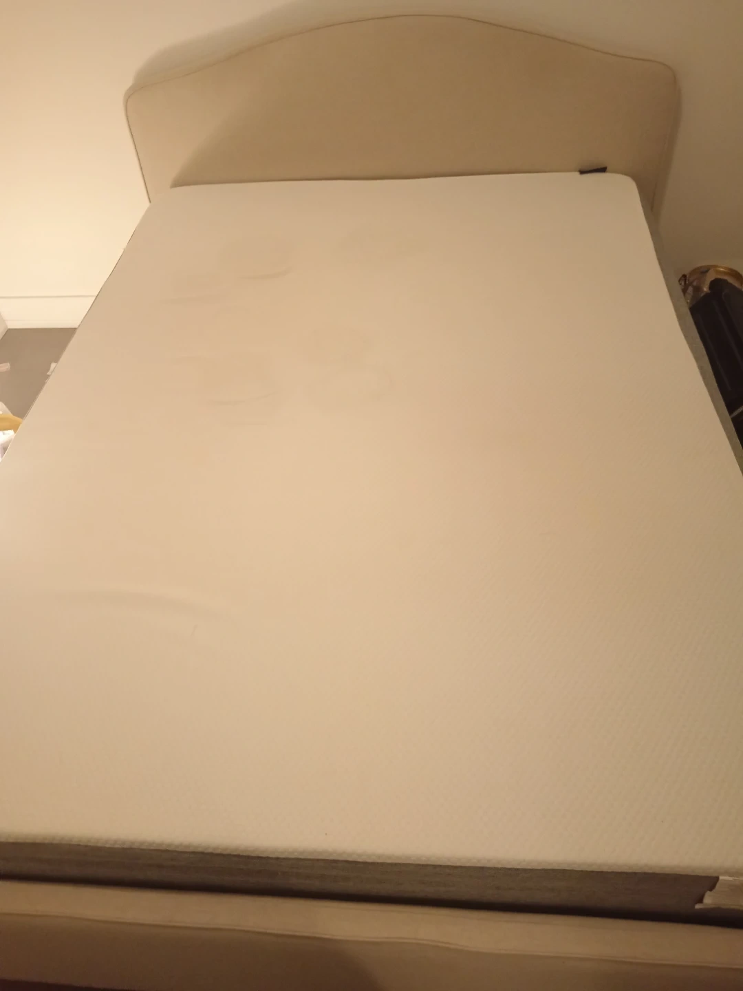 Mattress brand is Mollbly and very comfortable. It has a couple of stains. Measurements: 202L x 152W centimeters. Pickup only.