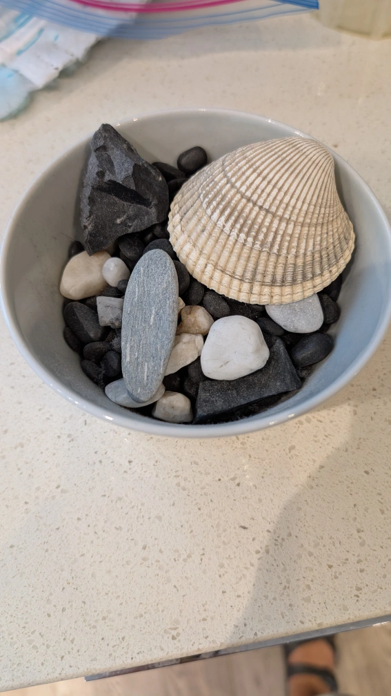- Assorted craft items: wire, craft moss, zen rocks, shell from Michael's
