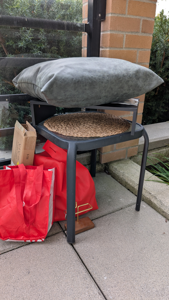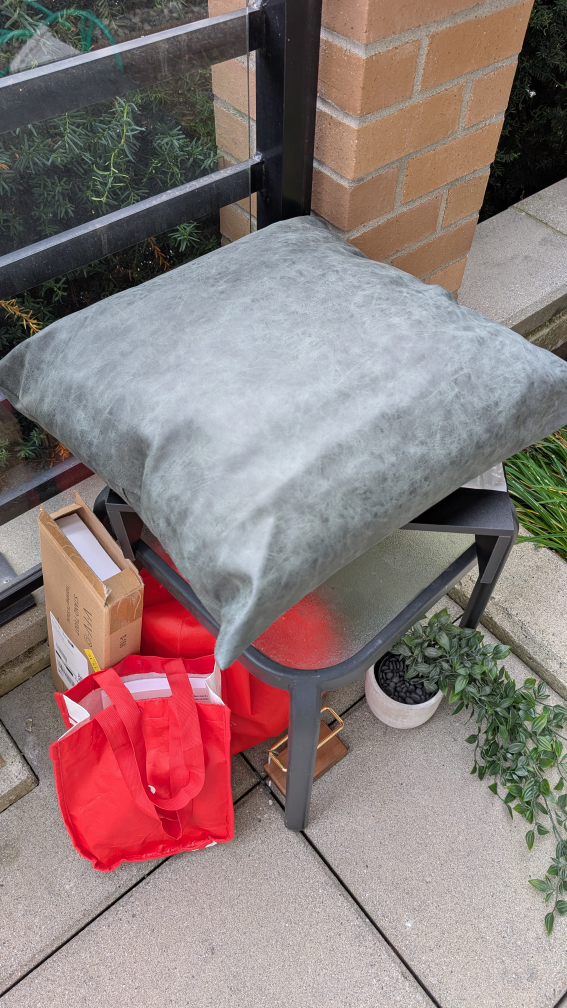 - Structube leather look cushion, never used always stored in pet-free, smoke-free home